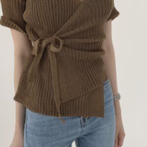 大人っぽい落ち着いた印象のトップスです。裾の変形デザインもポイントです。