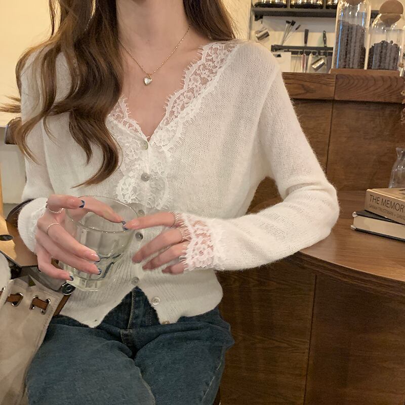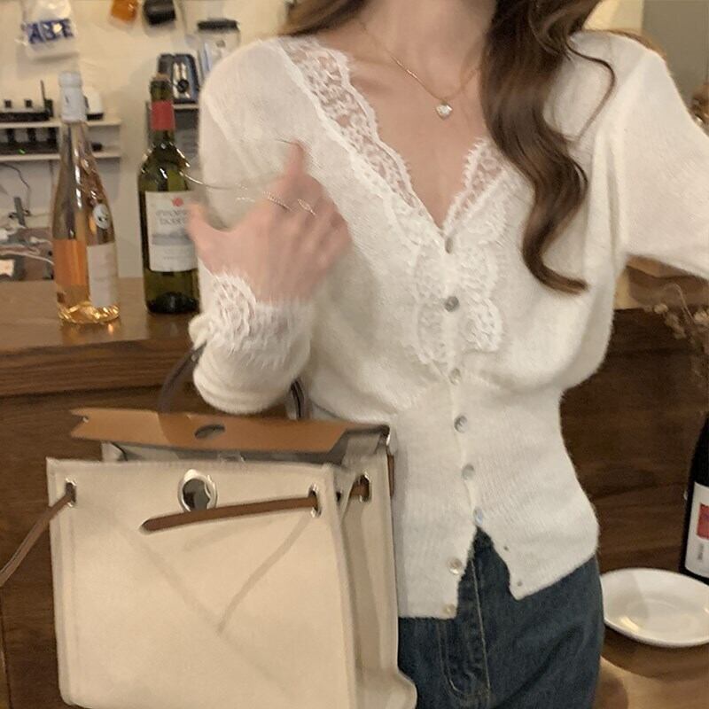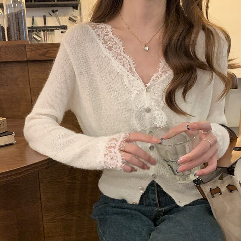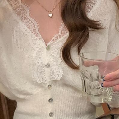 レースカーディガン トップス カーディガン ラブリー ホワイト 白 ショート丈 袖あり 長袖 Vネック スリム タイト 細身 シングルブレスト ボタン レース 大人女子 大人 上品 おしゃれ きれいめ シンプル エレガント レトロ レトロ風 キュート ガーリー かわいい 女子 個性的 デザイン 主役級 存在感 無地 春 スプリング 10代 20代 レディース 女性用 オフィス ビジネス OL 通勤 学生 通学 着回し 普段使い トレンド S M L