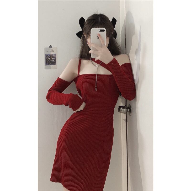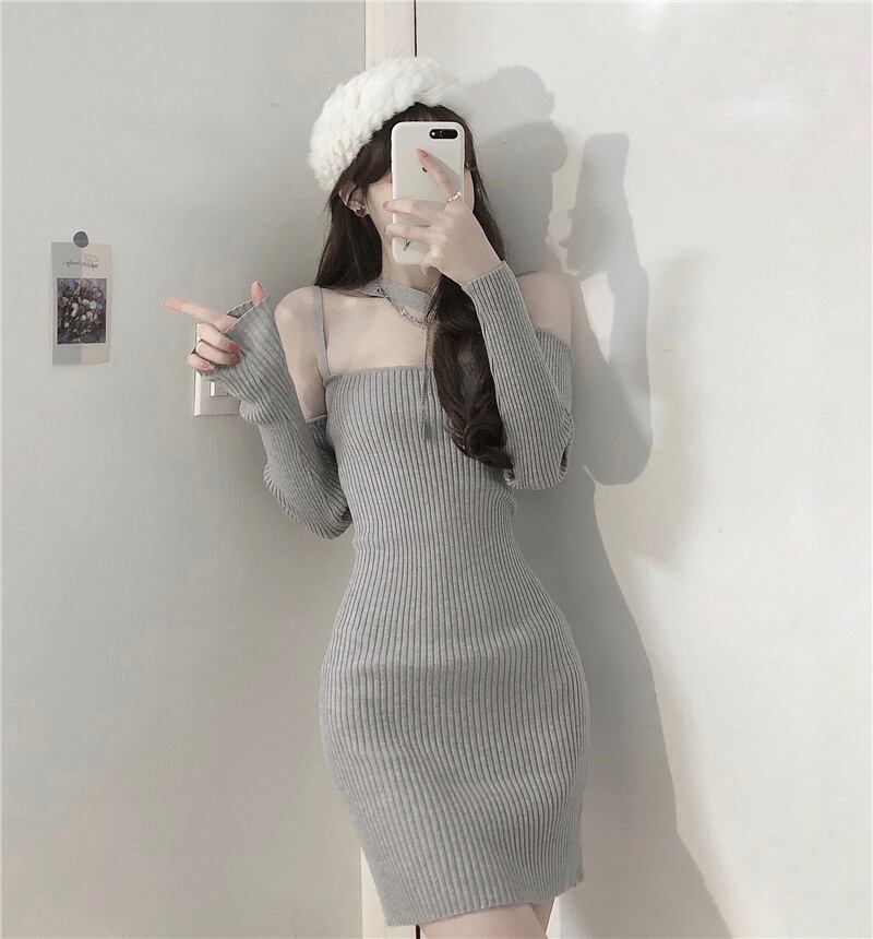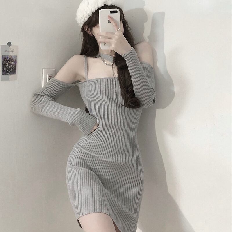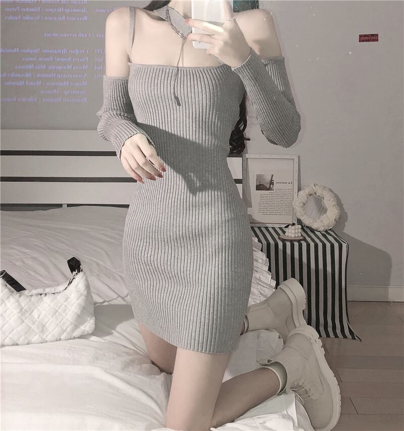 オフショルダーワンピース 魅せる グレー 灰色 ワイン ミニ丈 ショート丈 袖あり 長袖 ストラップ スリム タイト 細身 大人女子 大人 上品 おしゃれ かっこいい クール エレガント レトロ レトロ風 こなれ感 ラフ 個性的 デザイン 主役級 存在感 無地 春 スプリング 10代 20代 レディース 女性用 デート お出かけ 女子会 イベント リゾート 旅行 パーティ モテ 重ね着 トレンド ファッション コーデ 美脚 足長 細見え スタイル S M L
