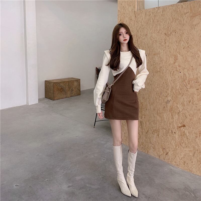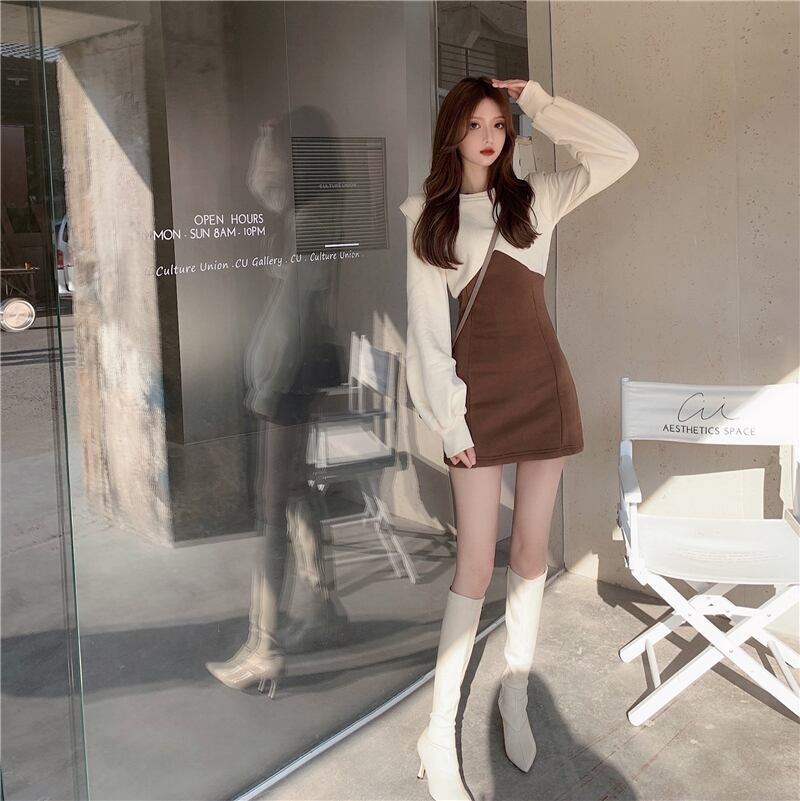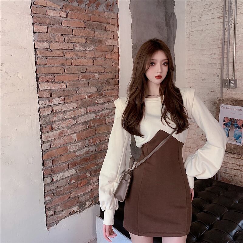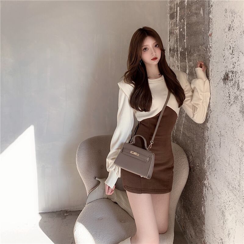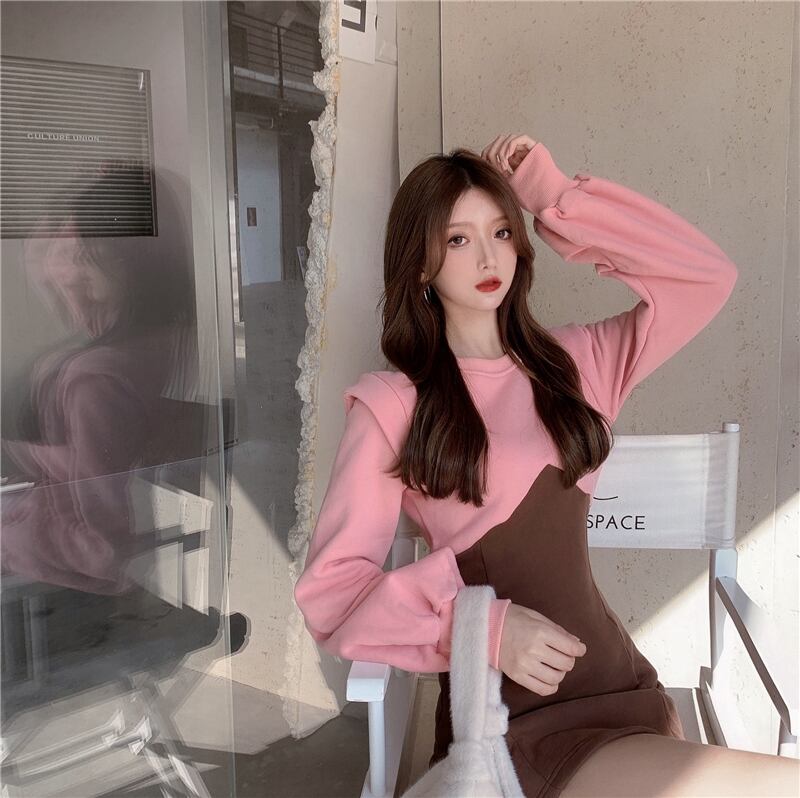 カジュアルワンピース ワンピース ホワイト 白 ピンク ミニ丈 ショート丈 袖あり 長袖 パフスリーブ ラウンドネック スリム タイト 細身 ポリエステル 大人女子 大人 上品 おしゃれ カジュアル レトロ レトロ風 こなれ感 ラフ キュート ガーリー かわいい 女子 個性的 デザイン 主役級 存在感 無地 配色 秋 オータム 冬 ウインター 10代 20代 レディース 女性用 学生 通学 デート お出かけ 女子会 着回し 普段使い ファッション コーデ S M L