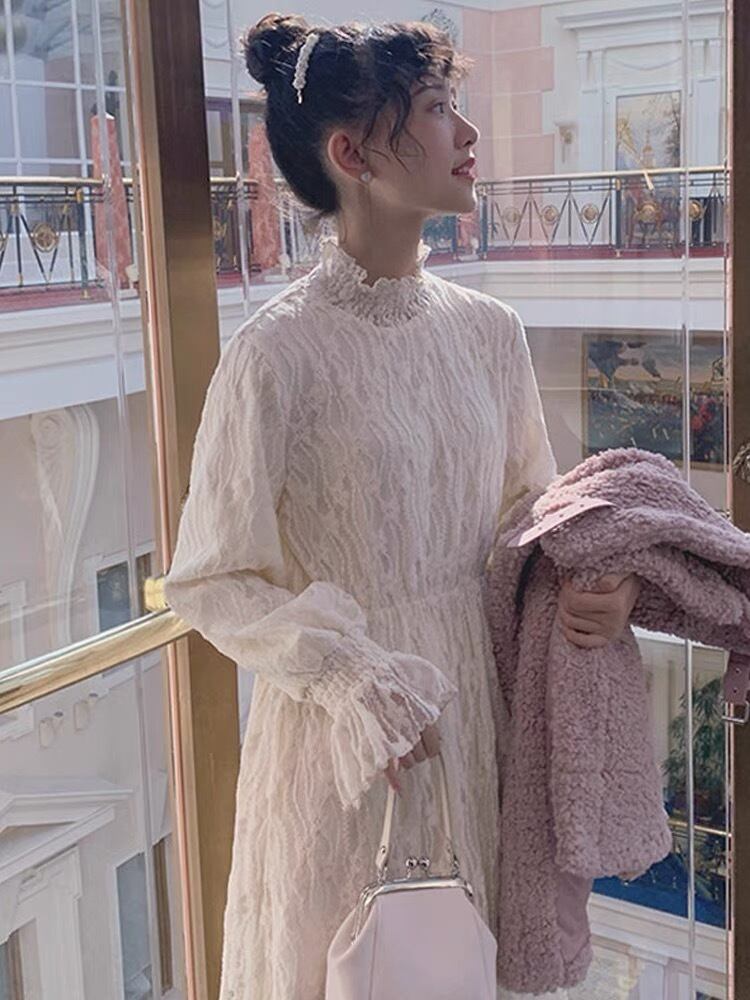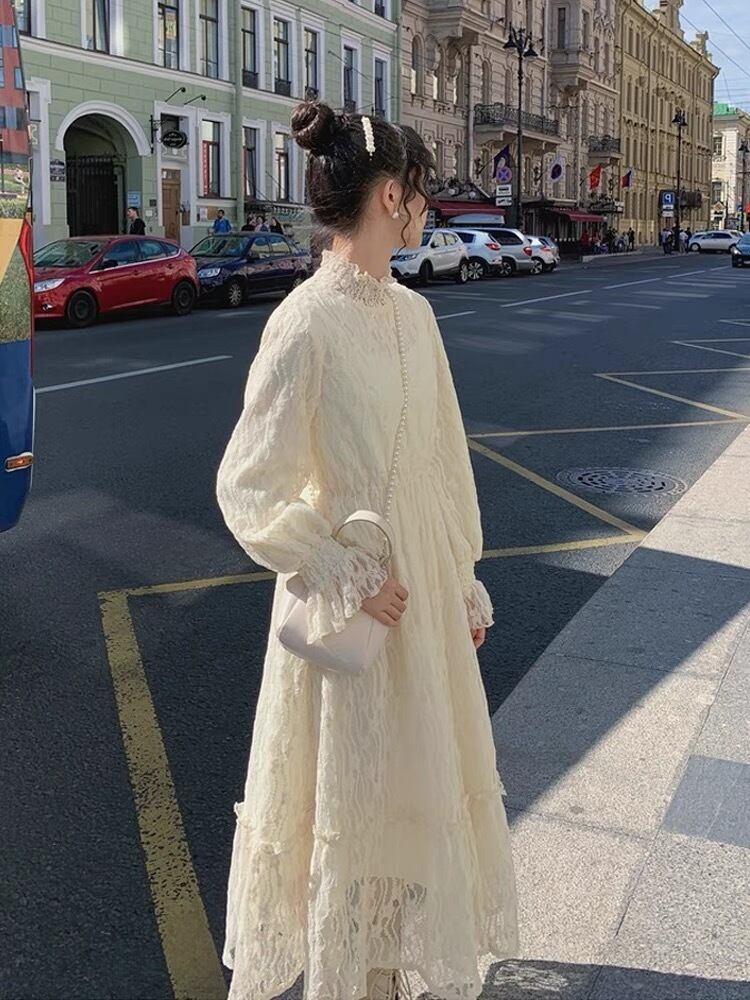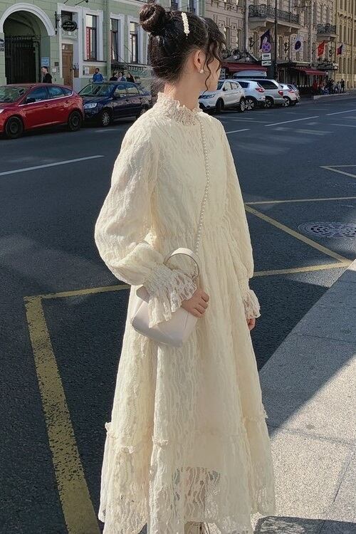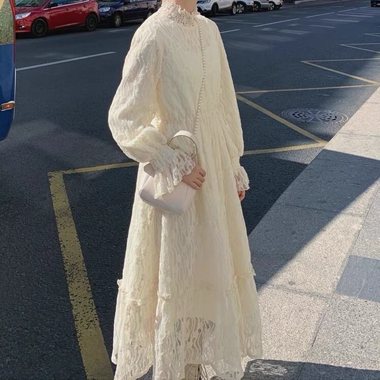 ロングドレス ワンピース 長袖 ハイネック レース フリル かわいい 大人可愛い 上品 おしゃれ お洒落 レトロ 大人可愛い 大人女子 ラブリー キュート ガーリー エレガント 主役級 存在感 フォーマル 春 夏 秋 冬 オールシーズン 結婚式 二次会 披露宴 10代 20代 30代 レディース 女性用 ママ 学生 デート お出かけ パーティー イベント ホテル レストラン 着回し 韓国 韓国系 ファッション コーデ スタイル モテ 新作 送料無料 トレンド 流行 インスタ映え インポート 海外 人気