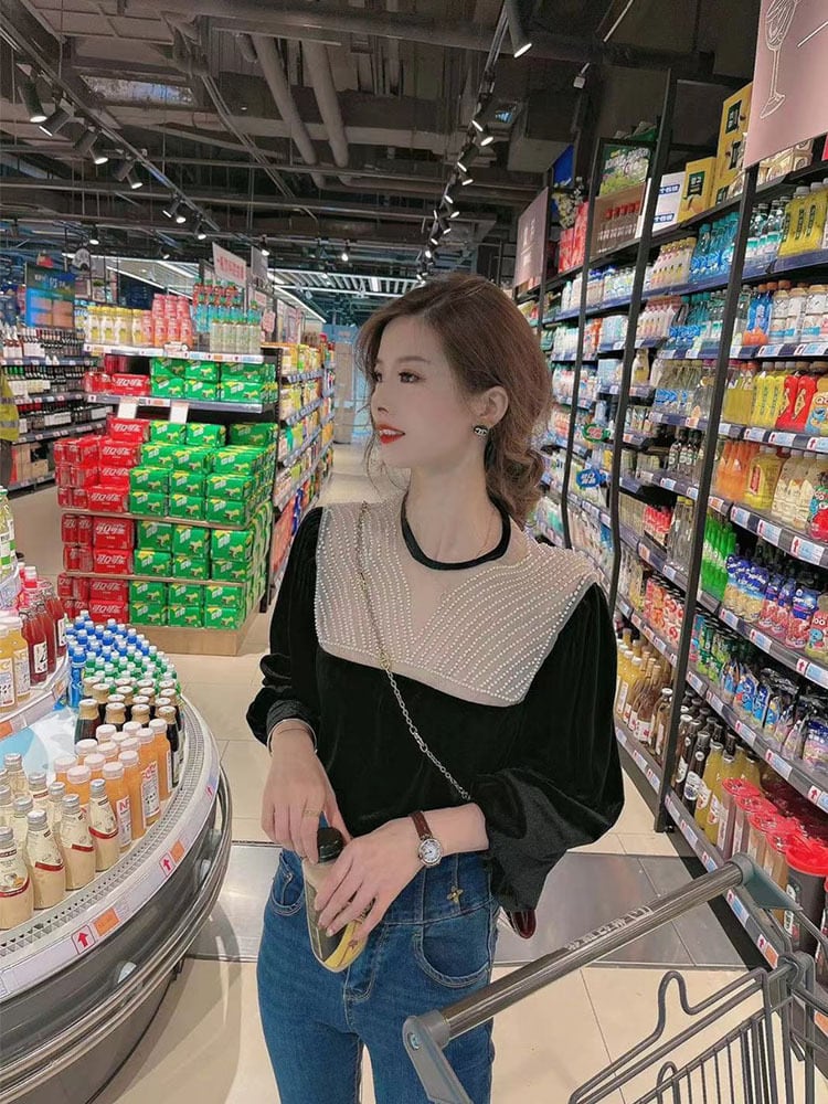 ベルベットトップス トップス 長袖 ボリューム袖 ラウンドネック レース 切り替えデザイン ドッキング ベロア ベルベット かわいい 大人可愛い きれいめ 上品 おしゃれ お洒落 レトロ 大人可愛い 大人女子 ラブリー キュート ガーリー 個性的 セクシー エレガント 主役級 存在感 無地 春 秋 冬 10代 20代 30代 レディース 女性用 デート お出かけ 女子会 お泊まり 休日 パーティー イベント ホテル レストラン 着回し 韓国 韓国系 オルチャン ファッション コーデ スタイル モテ 透け感