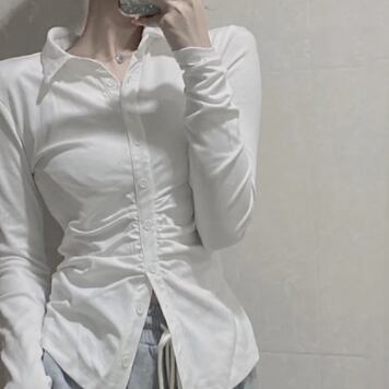 トップス シャツ 白シャツ 長袖 襟付き タイト 細身 スマート 前開き かわいい 大人可愛い きれいめ シンプル おしゃれ お洒落 大人可愛い 大人女子 ラフ 無地 春 秋 10代 20代 30代 40代 レディース 女性用 オフィス OL 通学 デート お出かけ 女子会 お泊まり 着回し 重ね着 韓国 韓国系 オルチャン ファッション コーデ スタイル 新作 定番 送料無料 トレンド 流行 インポート 海外 大人カジュアル 女子力 ぴったり スタイルアップ グレー 合わせやすい コスパ 値段重視