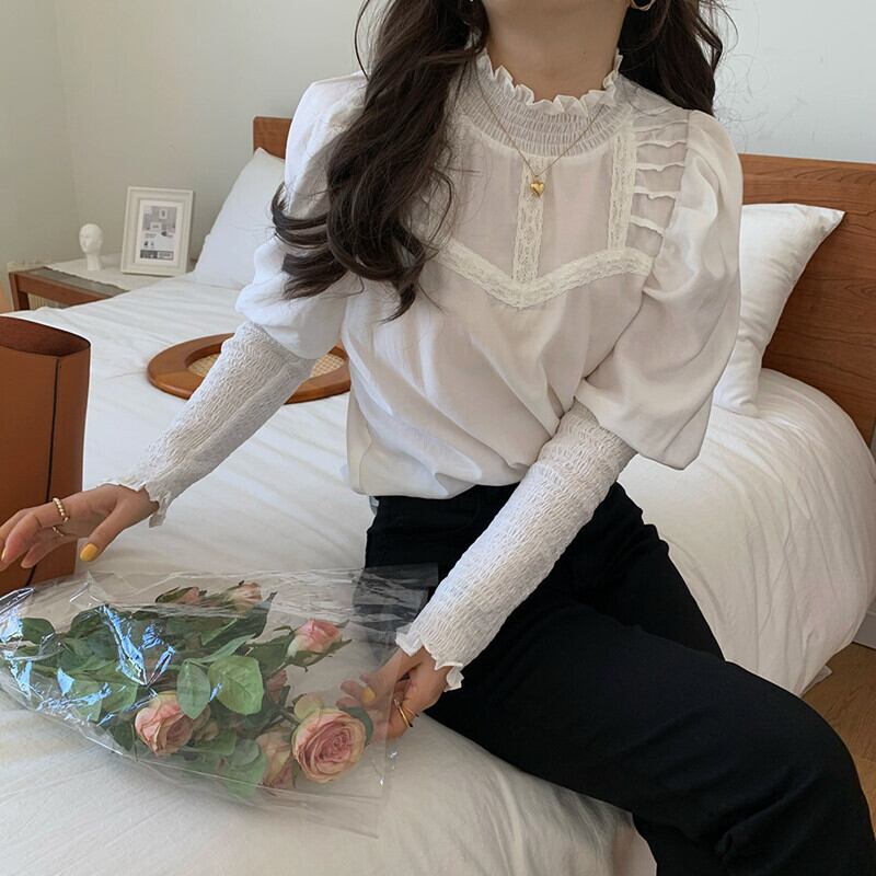 ギャザートップス ギャザーブラウス トップス ブラウス 白トップス 長袖 ハイネック タイト 細身 スマート レース 刺繍 フリル かわいい 大人可愛い きれいめ シンプル 大人 上品 おしゃれ お洒落 大人可愛い 大人女子 ラブリー キュート ガーリー エレガント 主役級 存在感 無地 春 秋 10代 20代 30代 40代 レディース 女性用 ママ OL 学生 デート お出かけ 女子会 お泊まり 休日 イベント 着回し 普段使い 韓国 韓国系 ファッション コーデ スタイル モテ 新作 定番 海外