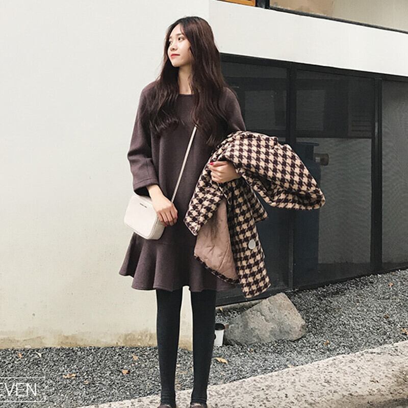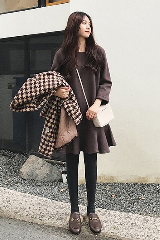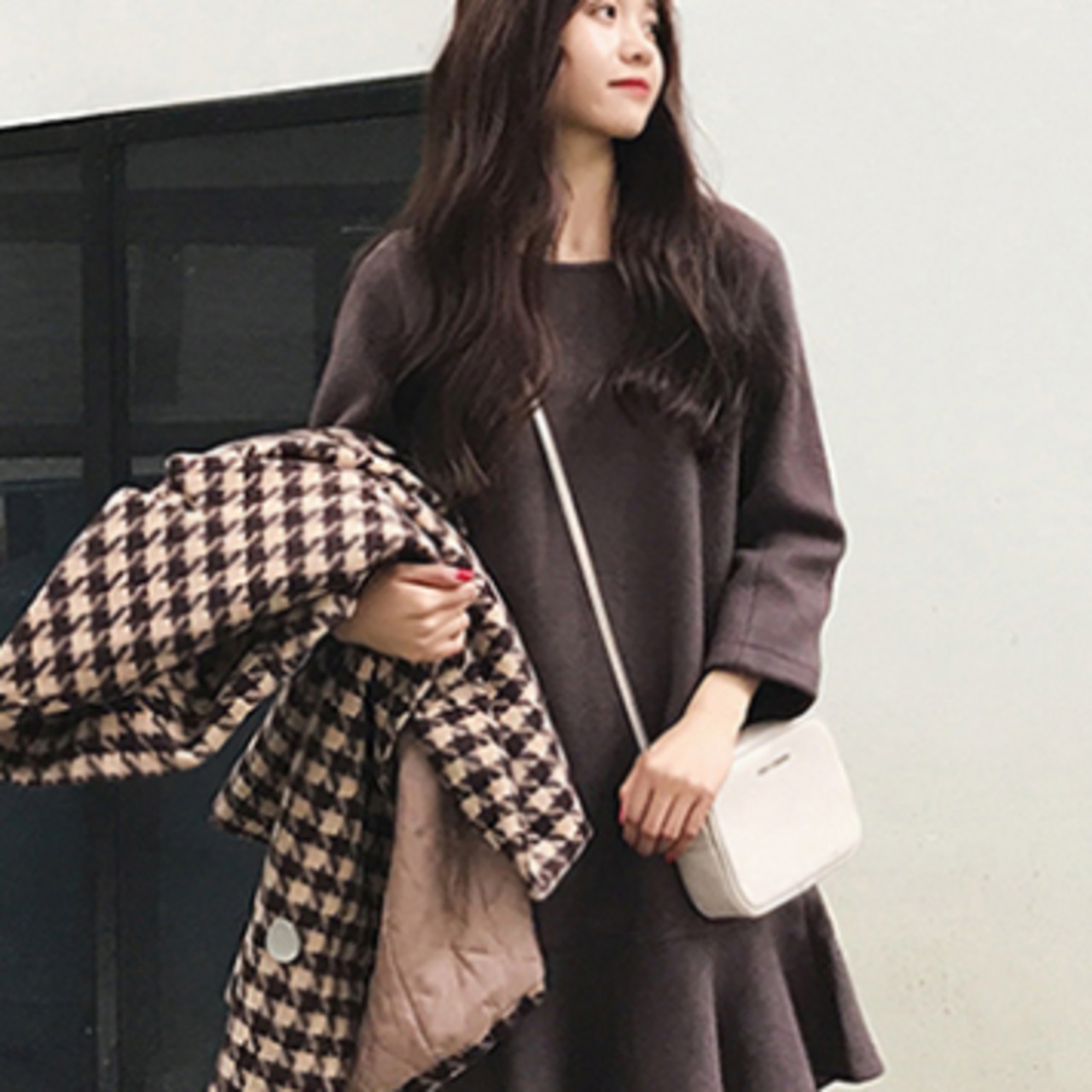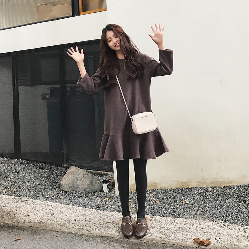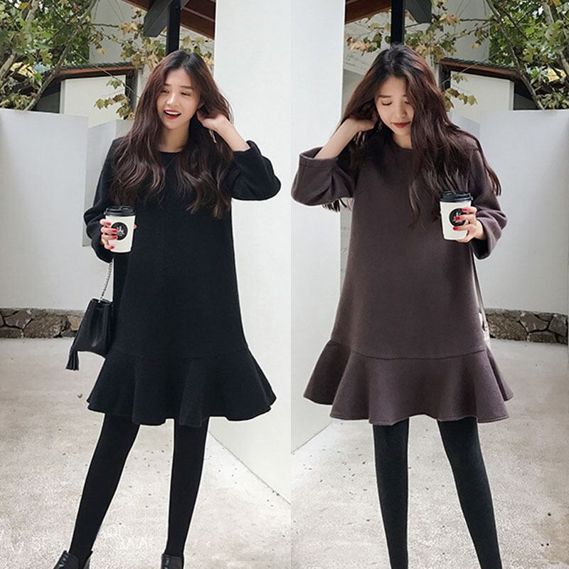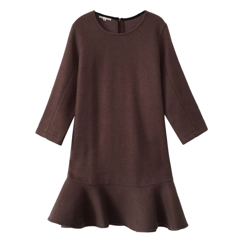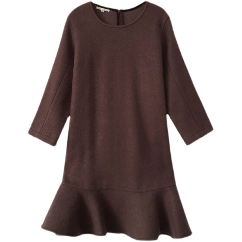 長袖ワンピース ワンピース モダン ブラック 黒 ブラウン 茶色 ミディアム丈 袖あり 長袖 ラウンドネック ファスナー ジッパー フリル 大人女子 大人 上品 おしゃれ きれいめ シンプル エレガント レトロ レトロ風 こなれ感 ラフ ルーズ シルエット 個性的 デザイン 主役級 存在感 無地 春 スプリング 秋 オータム 10代 20代 レディース 女性用 オフィス ビジネス OL 通勤 学生 通学 デート お出かけ 女子会 L XL 2XL 3XL 4XL 大きいサイズ