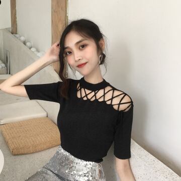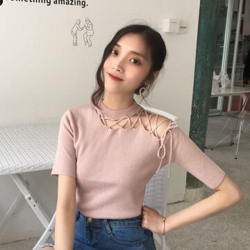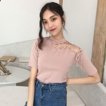 デザイン半袖トップス トップス カットソー 半袖 ハイネック スリム リボン 伸縮性 かわいい 大人可愛い きれいめ 大人 上品 かっこいい 大人可愛い 大人女子 ラブリー キュート 無地 春 夏 10代 20代 30代 40代 レディース ママ オフィス OL 学生 通学 デート お出かけ 公園デビュー 女子会 休日 ガーデン レストラン お散歩 人気 着回し 韓国 オルチャン ファッション コーデ 楽ちん モテ プレゼント ギフト 流行 インスタ映え 安い お得 合わせやすい 好感度 イメージアップ