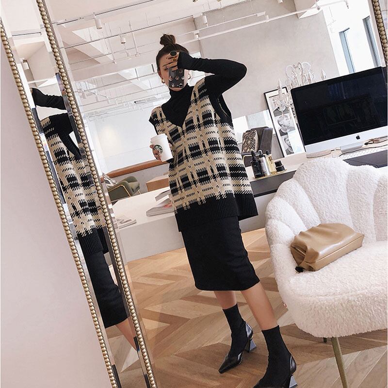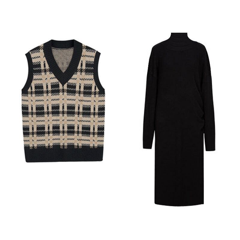 2ピースセット ワンピース ベスト ブラック 黒 ミディアム丈 袖なし ノースリーブ 袖あり 長袖 Vネック ハイネック 大人女子 大人 上品 おしゃれ カジュアル レトロ レトロ風 こなれ感 ラフ ルーズ シルエット 個性的 デザイン 主役級 存在感 無地 柄 チェック柄 秋 冬 10代 20代 30代 40代 レディース 女性用 学生 通学 デート お出かけ 女子会 休日 おうち 着回し 普段使い L XL 2XL 3XL 4XL 大きいサイズ ニュアンスカラー
