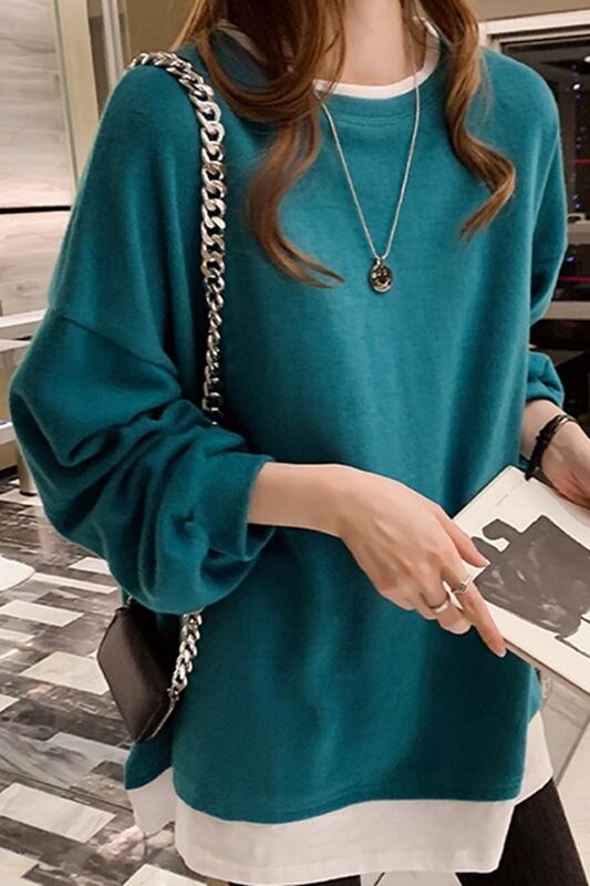 フェイクレイヤードトップスは、シンプルで個性的なデザインが特徴のオシャレなアイテムです。ミディアム丈で長袖、ラウンドネックで着心地もよく、動きやすさも抜群。ワイドでルーズなシルエットが、カジュアルなコーディネートにぴったり。フェイク2ピースのデザインも、上品な存在感を演出します。