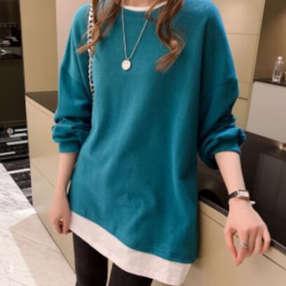 フェイクツーピース長袖トップス