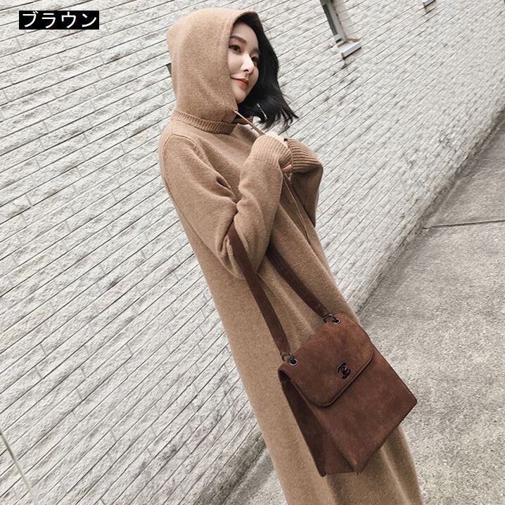 ロング他丈のニットワンピースです。