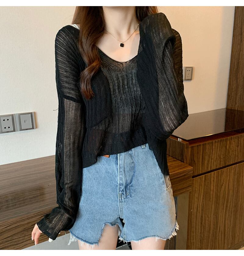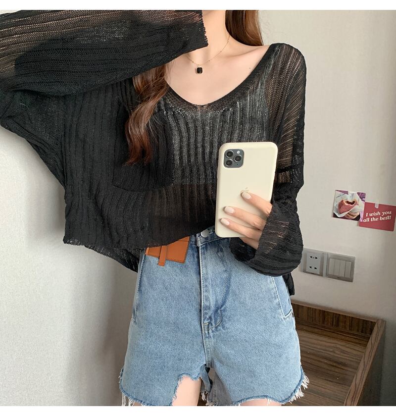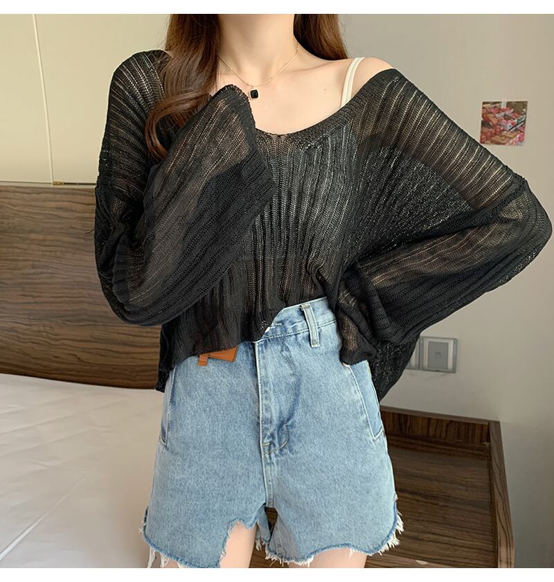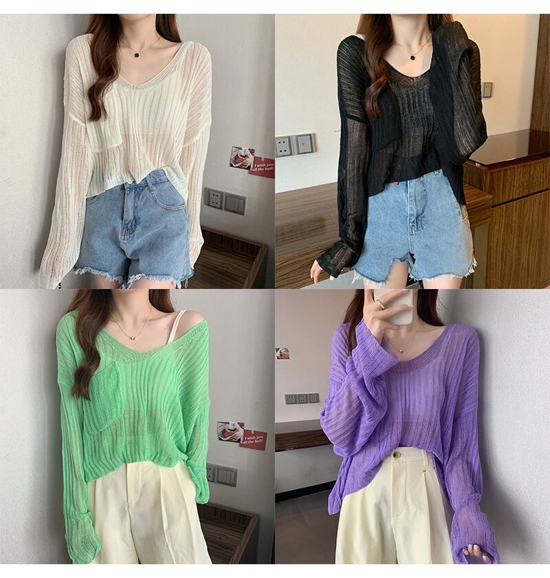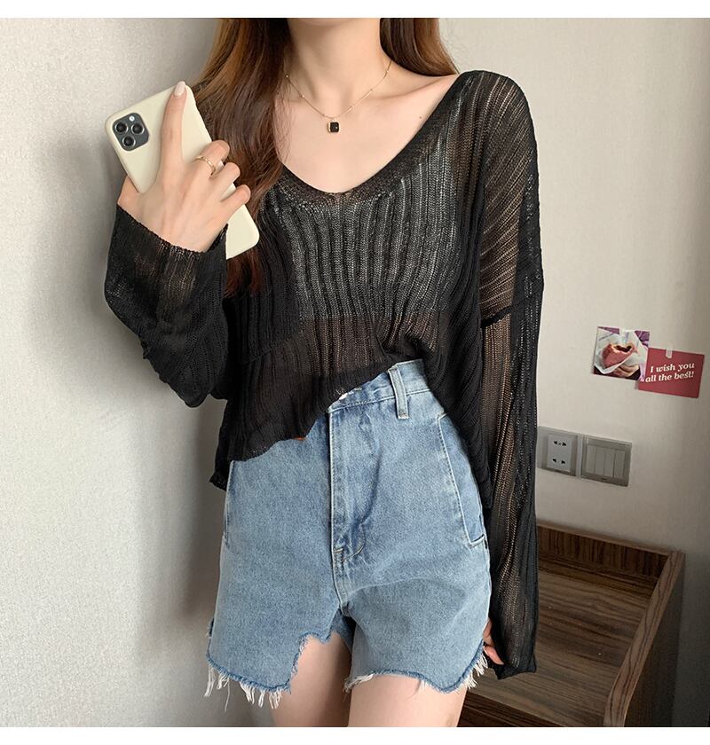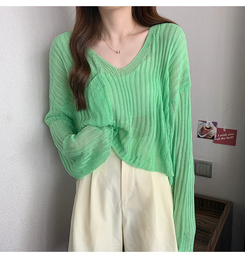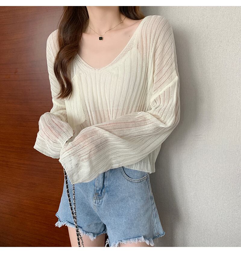 Vネック薄手セーター。