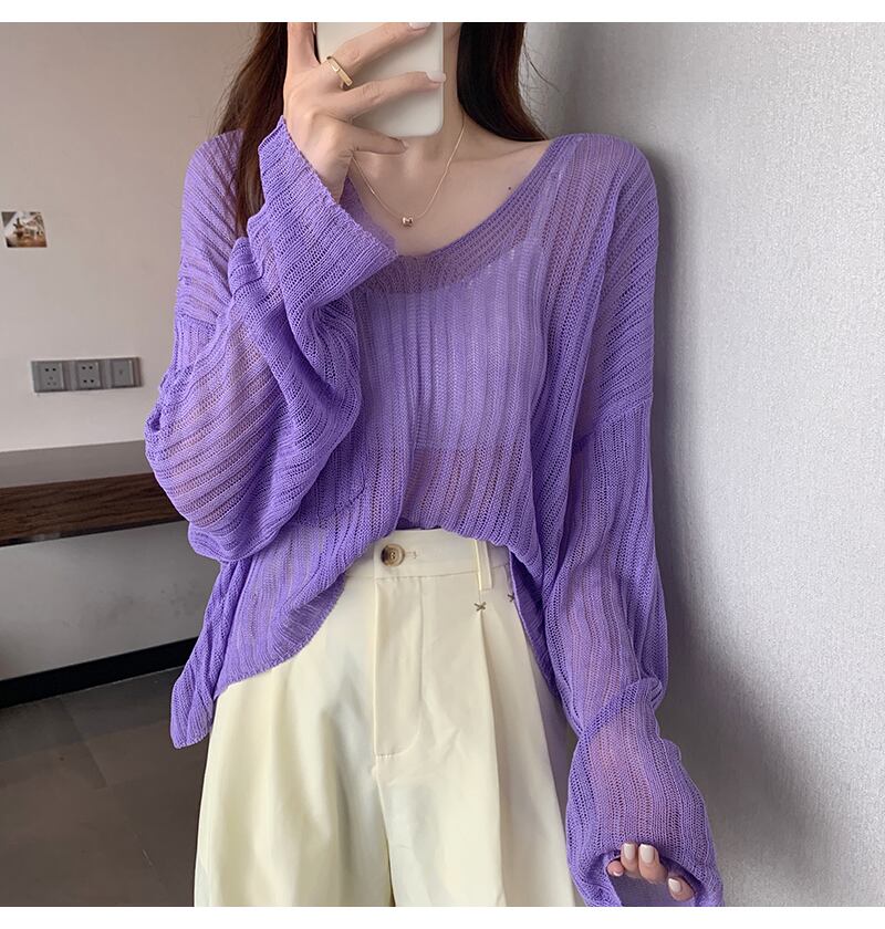 ニット トップス ブラウス ニットソー 白 ホワイト 黒 ブラック 緑 グリーン 紫 パープル ミディアム丈 長袖 萌袖 Vネック ふわふわ ポケット 透け感 薄手 かわいい 大人可愛い きれいめ シンプル 大人 おしゃれ 大人女子 こなれ感 ラフ ルーズ クール 存在感 抜け感 無地 春 夏 誕生日 10代 20代 レディース 通勤 通学 デート お出かけ 女子会 休日 リゾート 旅行 着回し 普段使い 重ね着 ファッション コーデ スタイル トレンド インスタ映え フリーサイズ 色展開