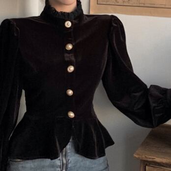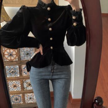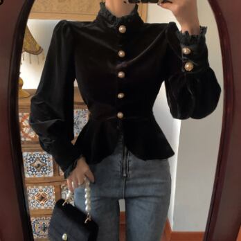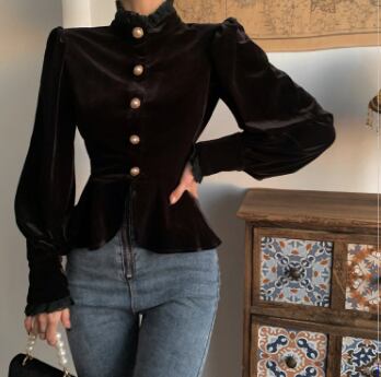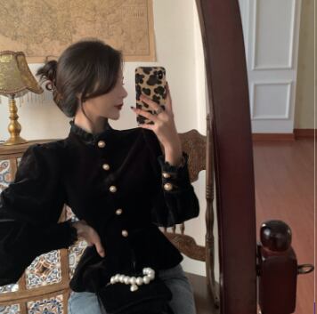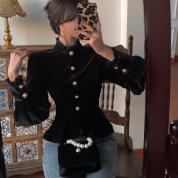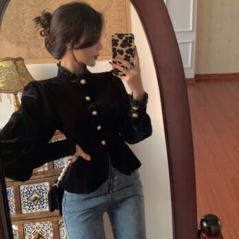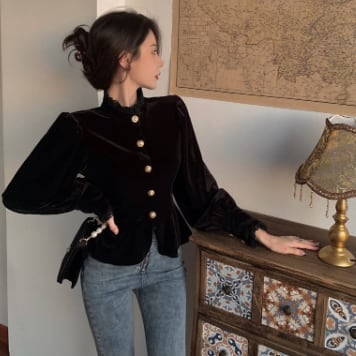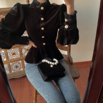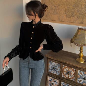 シックなベルベット長袖ブラウスです。