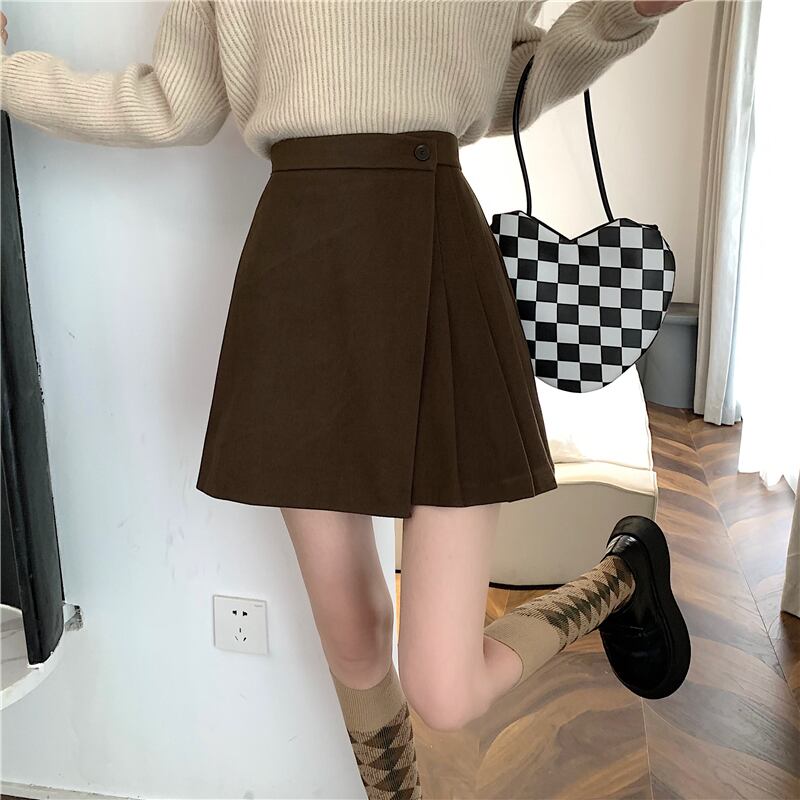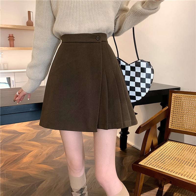 ウールスカート スカート プリーツスカート ショート ショート丈 黒 ブラック 茶色 ブラウン スリム Aライン プリーツ ハイウエスト ボタン ウール かわいい 大人可愛い シンプル カジュアル 大人 おしゃれ お洒落 大人女子 こなれ感 マニッシュ キュート ガーリー 主役級 存在感 無地 春 秋 誕生日 10代 20代 レディース 通勤 通学 デート お出かけ 女子会 休日 ガーデン レストラン 着回し 普段使い ファッション コーデ スタイル 楽ちん 脚長 定番 流行 サイズ S M L 色展開