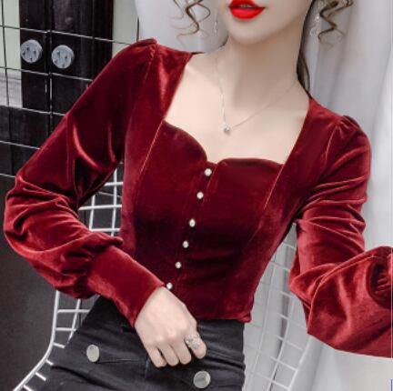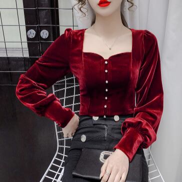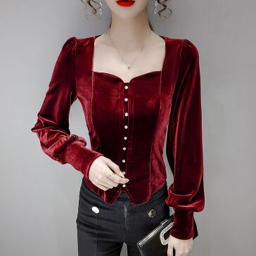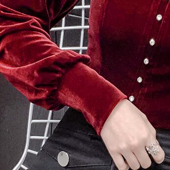 ベルベット長袖ブラウス トップス ブラウス 長袖 スリム タイト 細身 ベルベット ベロア ボタン かわいい 大人可愛い きれいめ シンプル 大人 上品 おしゃれ レトロ エキゾチック 大人女子 キュート 個性的 クール エレガント 存在感 無地 秋 冬 誕生日 ハロウィン クリスマス バレンタイン 10代 20代 30代 40代 レディース 女性用 デート お出かけ 女子会 休日 イベント ホテル ガーデン レストラン 人気 高見え 着回し ファッション コーデ スタイル モテ プレゼント ギフト