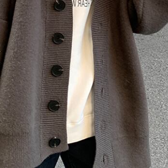 ご覧いただきありがとうございます!こちらは、シンプルでモード感漂うセーターカーディガンです。ブラウンとブラックの2色展開で、どちらの色も上品な雰囲気があります。細身でスマートなシルエットなので、きちんと感を出したい時にもぴったり。一枚で着ても、インナーとのレイヤードスタイルも楽しめますよ。さまざまなシーンでコーディネートの幅を広げてくれる、おしゃれでかわいいアイテムです。大人女子のコーディネートには必須アイテムですね!女性らしい雰囲気も残しつつ、モード感もアップしてくれる、特別感のあるデザインです。ぜひ、お気に入りの一枚に仲間入りさせてください。<ご注意>撮影時の照明やPC・スマホのモニターによって、実際のお色と異なって見える場合がございますので、予めご了承ください。