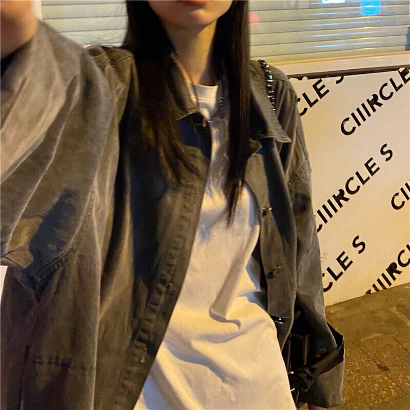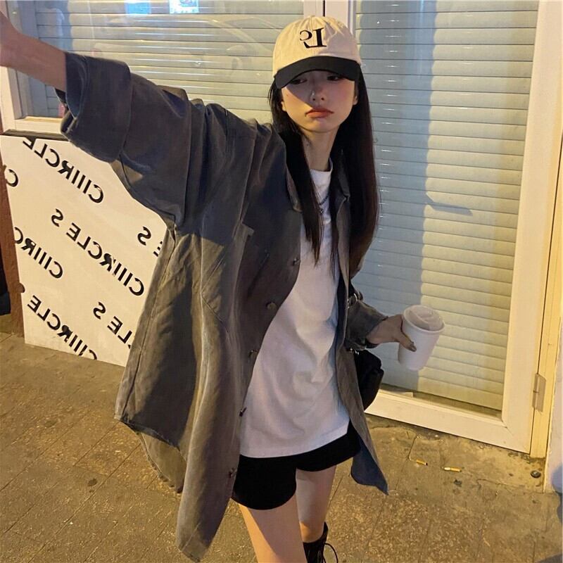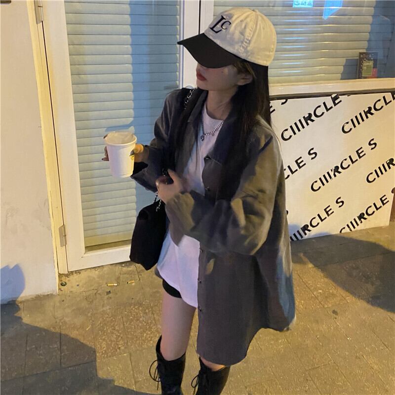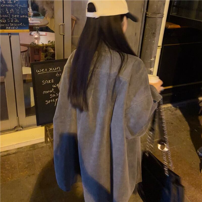 デニム シャツジャケット オーバーサイズ チュニック丈 羽織り トップス アウター 上着 ミディアム丈 長袖 ドロップショルダー 萌袖 襟付き ポケット 前開き カラーデニム シンプル カジュアル おしゃれ かっこいい 大人女子 こなれ感 ラフ メンズライク ボーイッシュ ルーズ クール 無地 春 秋 レディース 女性用 ママ 女の子 学生 通学 お出かけ 休日 着回し 普段使い 重ね着 韓国系 オルチャン コーデ 楽ちん 体系カバー S M L XL 大きめ ゆったり ゆる サイズ グレー
