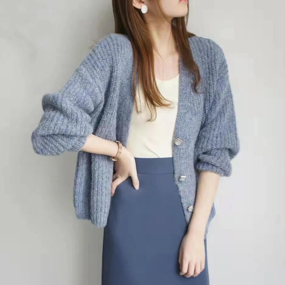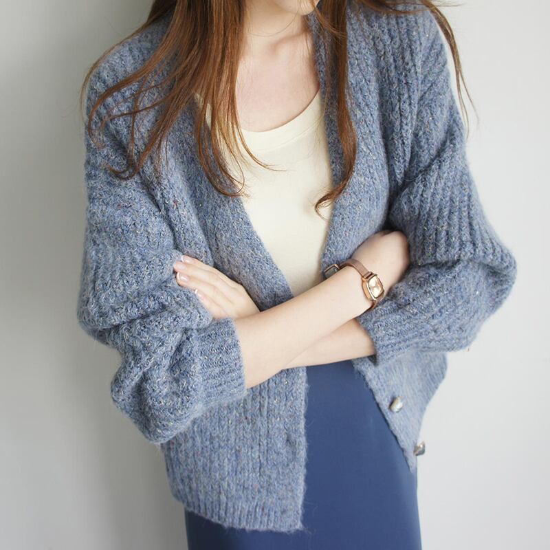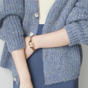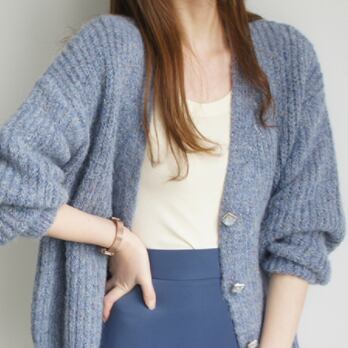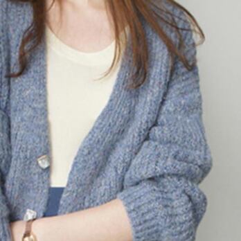 ソフトな肌触りで、ボタンがおしゃれなニットカーディガンです。