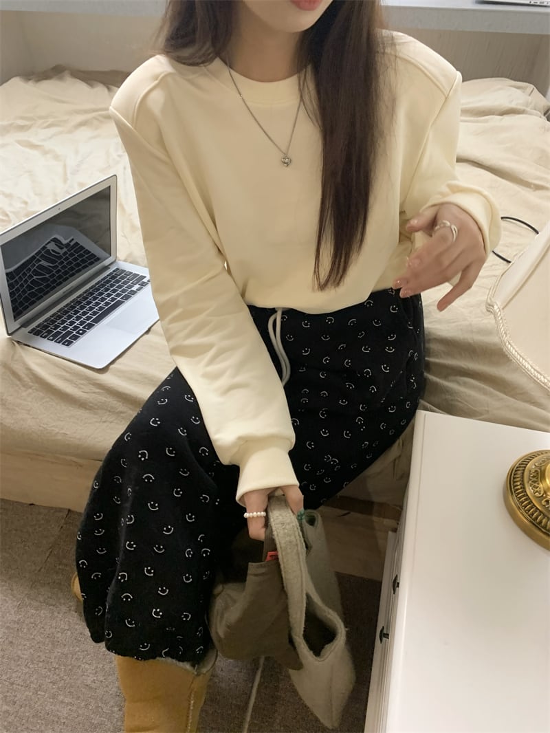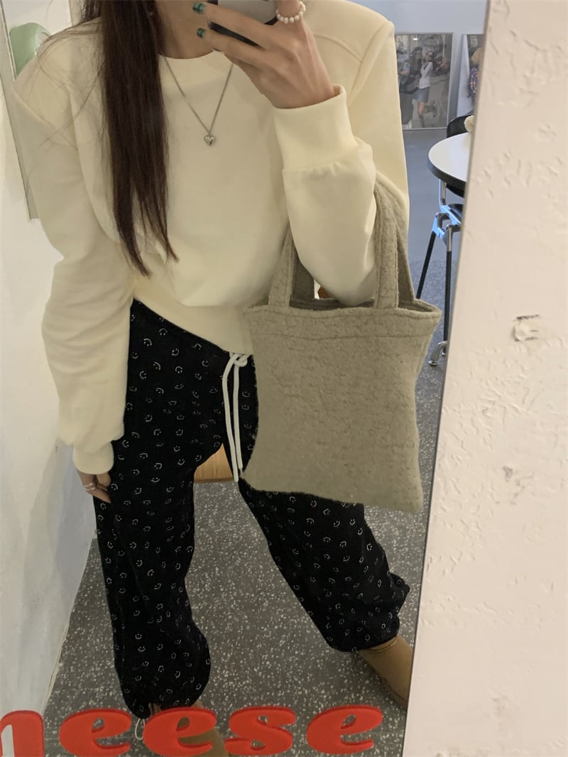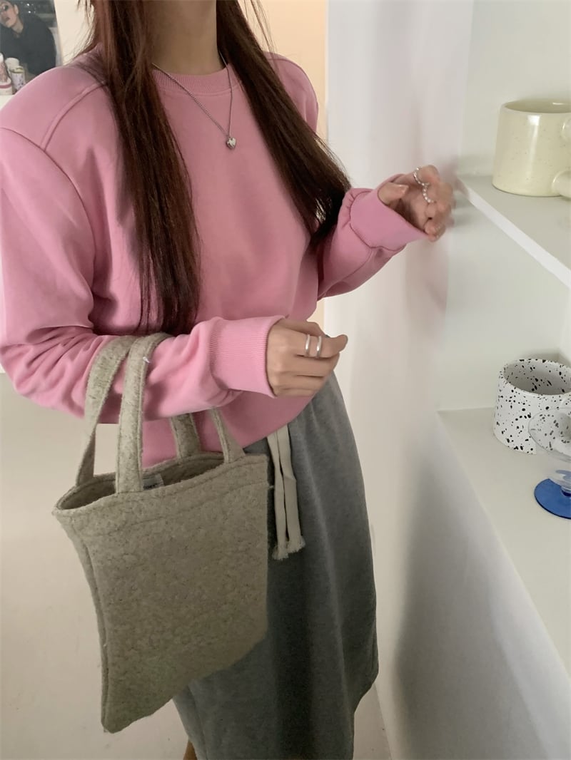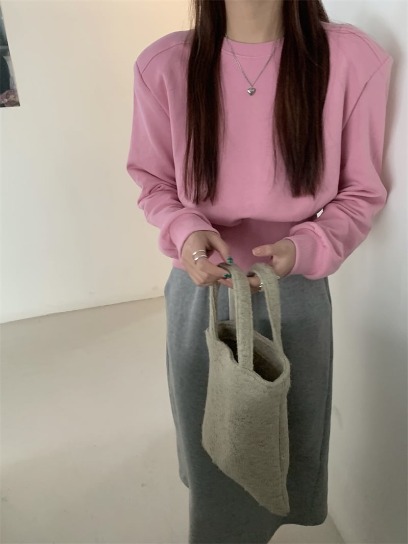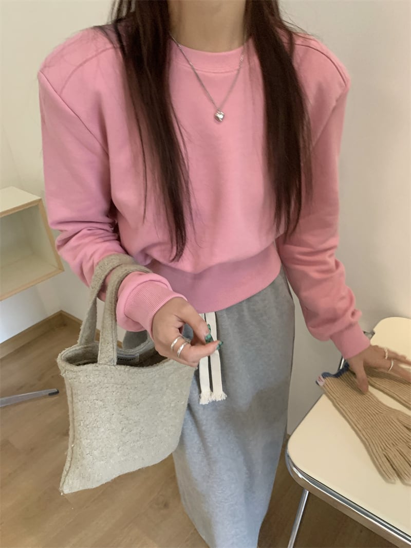 肩切替えデザインのシンプルなショート丈スウェット。