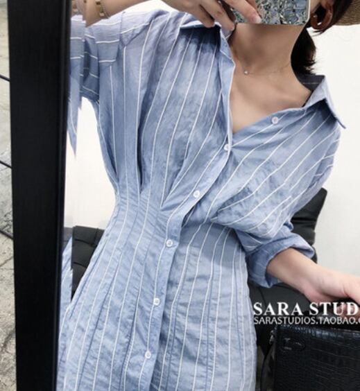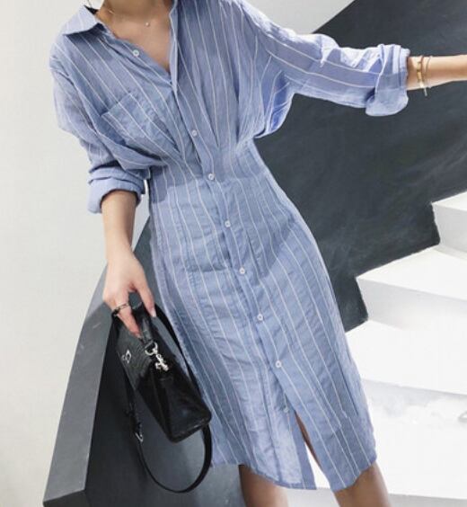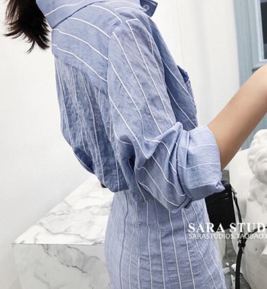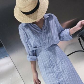 ストライプワンピース シャツワンピース ワンピース 膝丈 ひざ丈 袖あり 長袖 Vネック 襟付き ウエストマーク ハイウエスト 前開き 薄手 かわいい 大人可愛い シンプル 大人 おしゃれ お洒落 大人可愛い 大人女子 こなれ感 ラブリー キュート ガーリー クール モード系 セクシー エレガント 主役級 ストライプ 春 夏 10代 20代 30代 40代 50代 レディース 女性用 ママ オフィス OL デート お出かけ 女子会 休日 着回し 普段使い 韓国 韓国系 ファッション コーデ スタイル モテ