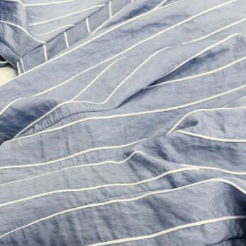 ウエストマークが特徴的な、ストライプシャツワンピースです。