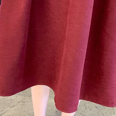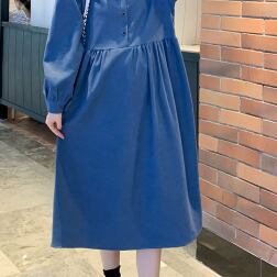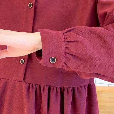 コーデュロイ素材を使用しており、秋冬の季節コーデにぴったり。フレアなシルエットとワイドな袖が女性らしさを引き立て、存在感抜群の主役級ワンピースです。