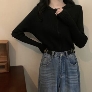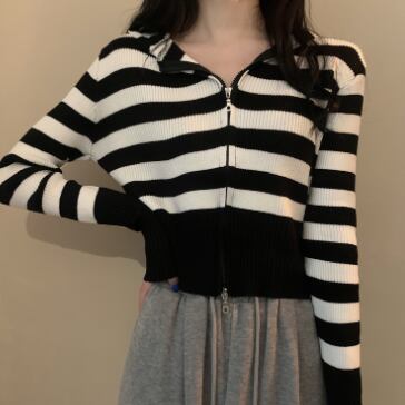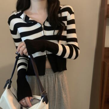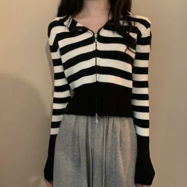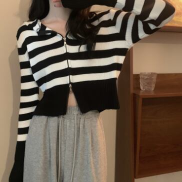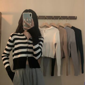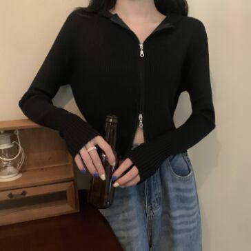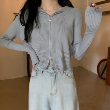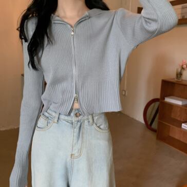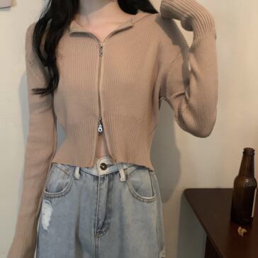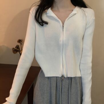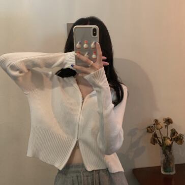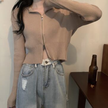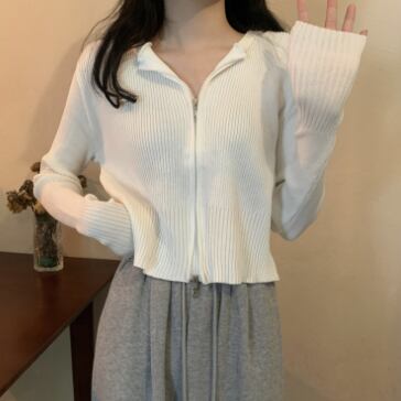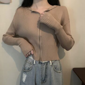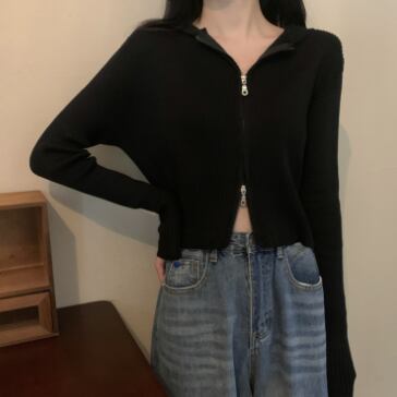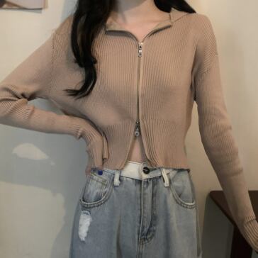ショート丈ジップ式の長袖カーディガンです。