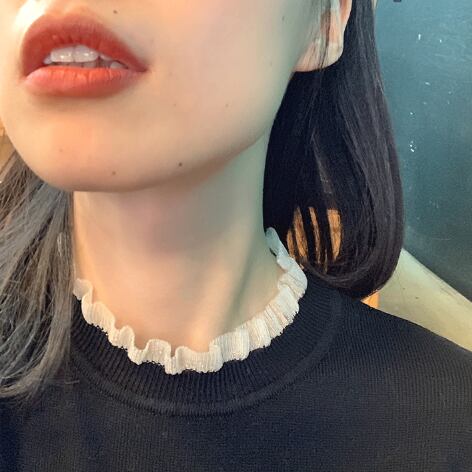 大人女子にぴったりなニットトップスが新登場!スタンドカラーにフリルデザイン、透け感がエレガントさを演出します。シンプルなブラックカラーで、オフィスからカジュアルまで幅広いシーンで活躍します。