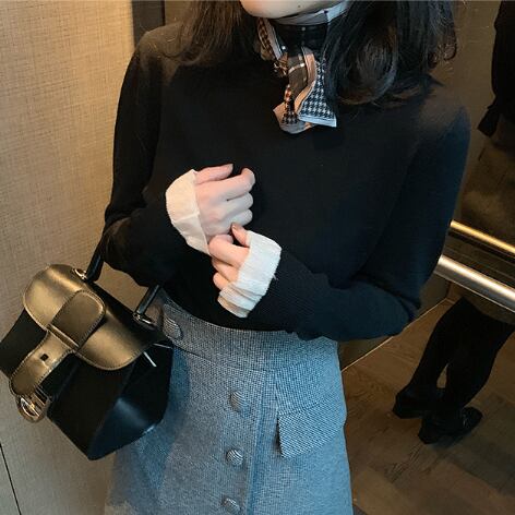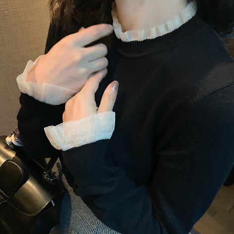 ニットトップス 魅せる セーター プルオーバー クラシック ブラック 黒 袖あり 長袖 スタンドカラー スリム 細身 フリル 透け感 シースルー 大人女子 大人 上品 おしゃれ きれいめ シンプル エレガント レトロ レトロ風 こなれ感 ラフ キュート かわいい 女子 個性的 デザイン 主役級 存在感 無地 春 スプリング 秋 オータム 10代 20代 30代 レディース 女性用 オフィス ビジネス OL 通勤 学生 通学 着回し 普段使い S M 小さいサイズ XS