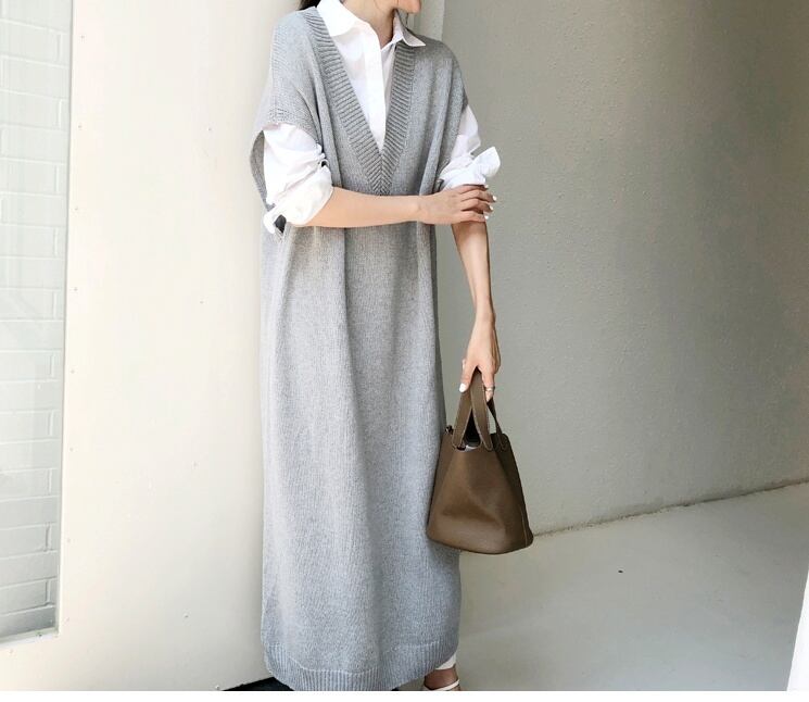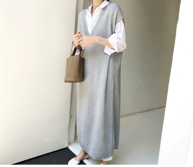 ニットワンピース ワンピース ロング ロング丈 袖なし ノースリーブ Vネック かわいい 大人可愛い シンプル カジュアル おしゃれ お洒落 大人可愛い 大人女子 こなれ感 ラフ マニッシュ キュート ガーリー ルーズ 主役級 存在感 無地 春 秋 冬 10代 20代 30代 レディース 女の子 学生 デート お出かけ 女子会 お泊まり 休日 着回し 普段使い 重ね着 韓国 韓国系 ファッション コーデ スタイル 楽ちん 暖かい モテ 体系カバー 新作 定番 送料無料 トレンド 流行 ゆったり ゆる 海外