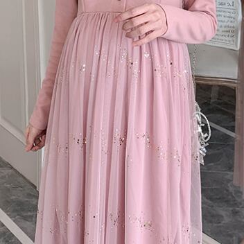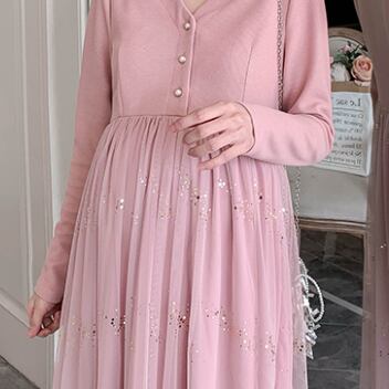 マタニティワンピースの新定番!華やかで可愛らしいデザインが魅力的な、セミフレアのVネックワンピースです。長袖で、春や秋など季節を問わず着用できるのも嬉しいポイント。さらに、チュールとシフォン素材を組み合わせたレイヤード仕様が、上品な印象を与えてくれます。結婚式や二次会、披露宴などのフォーマルなシーンにもぴったり!もちろん、デートや女子会などのカジュアルな場面でも活躍できる、着回し力の高いアイテムです。ビッグサイズでゆったりとした着心地も特徴の一つです。あなたのマタニティスタイルを、さらに輝かせてくれることでしょう。
