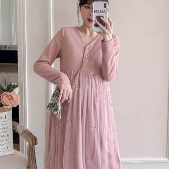 マタニティワンピース マタニティドレス ワンピース 長袖 Vネック セミフレア チュール シフォン かわいい 大人可愛い 上品 おしゃれ お洒落 大人可愛い 大人女子 ラブリー キュート ガーリー セクシー エレガント 主役級 存在感 無地 春 秋 結婚式 二次会 披露宴 10代 20代 30代 レディース 女性用 ママ マタニティ デート お出かけ 女子会 お泊まり 休日 パーティー イベント ホテル レストラン 着回し 韓国 韓国系 ファッション コーデ スタイル モテ 大きめ ビッグサイズ ゆったり