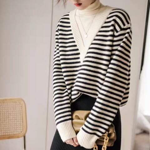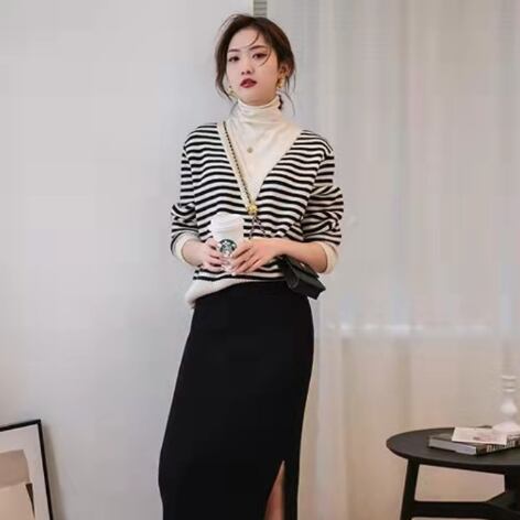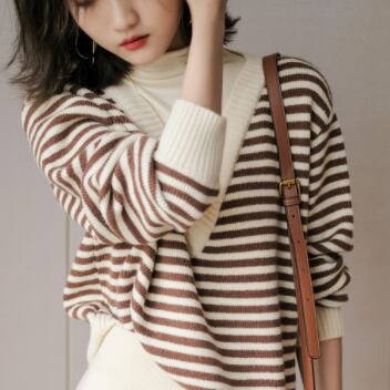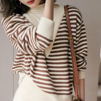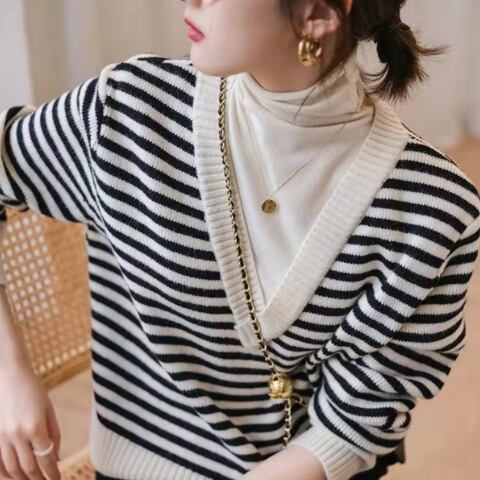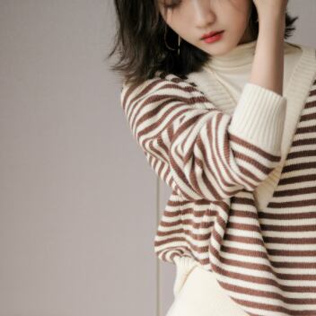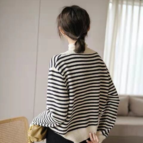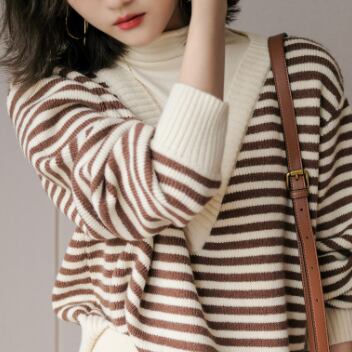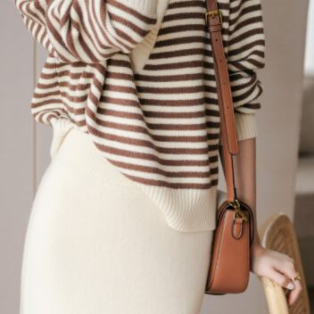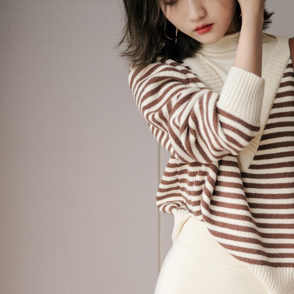 ボーダー柄と言えば、夏のビーチスタイルに限られがちですが、このボーダーニットトップスはブラックとブラウンの組み合わせが、きれいめシーンや冬のコーディネートにもぴったり。細身でストレートなラインは、大人っぽい印象を与えます。
