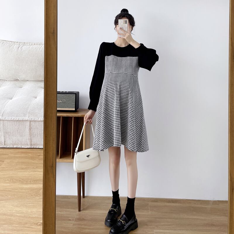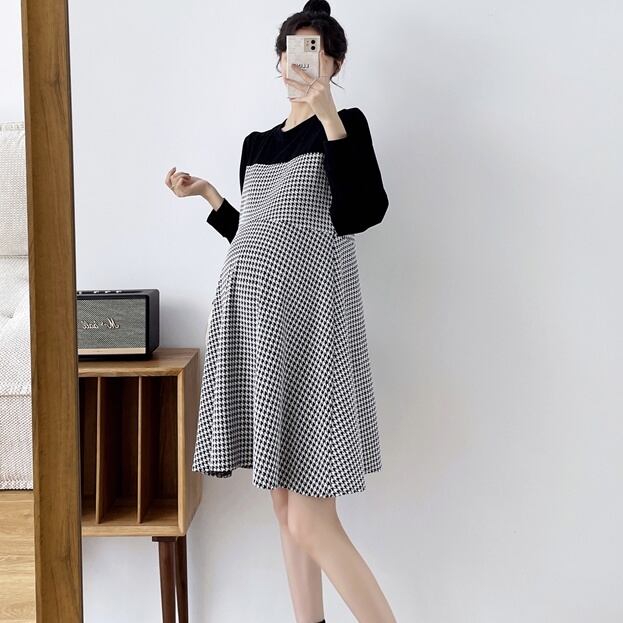 マタニティワンピース マタニティドレス ワンピース ミニ ミニ丈 膝上 長袖 ラウンドネック フレア 切り替えデザイン かわいい 大人可愛い きれいめ おしゃれ お洒落 レトロ 大人可愛い 大人女子 ラブリー キュート ガーリー エレガント 主役級 存在感 格子柄 千鳥格子 10代 20代 30代 レディース 女性用 ママ マタニティ デート お出かけ 女子会 お泊まり 休日 着回し 韓国 韓国系 ファッション コーデ スタイル 楽ちん モテ 大きい 大きめ ビッグサイズ ゆったり ゆる 海外 人気