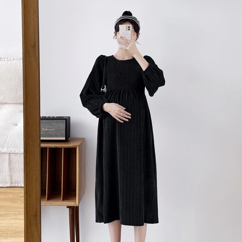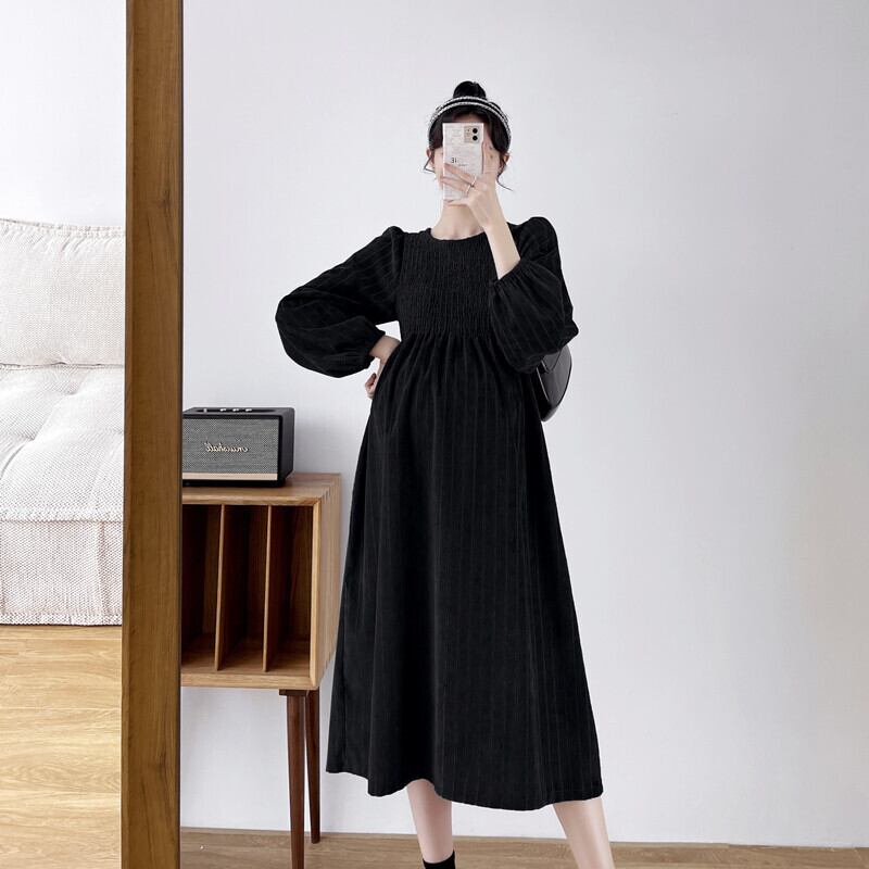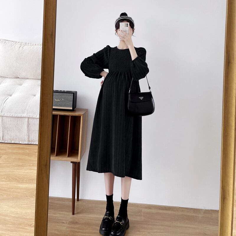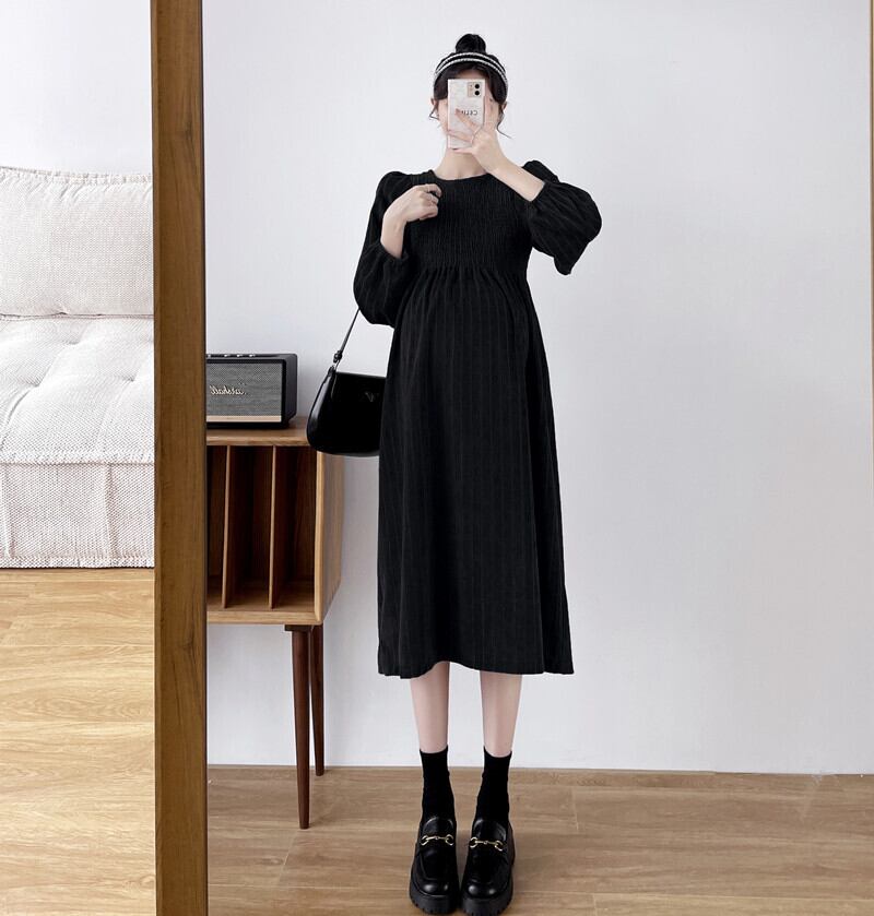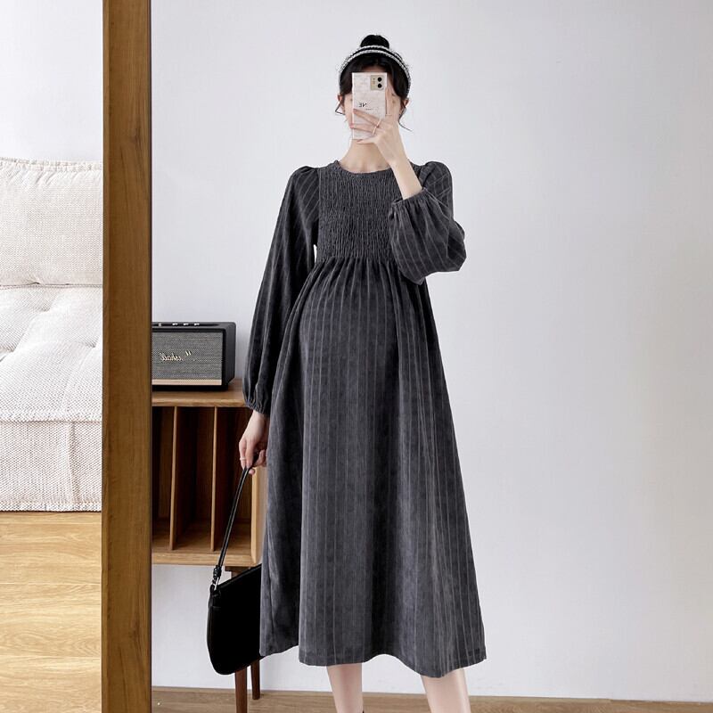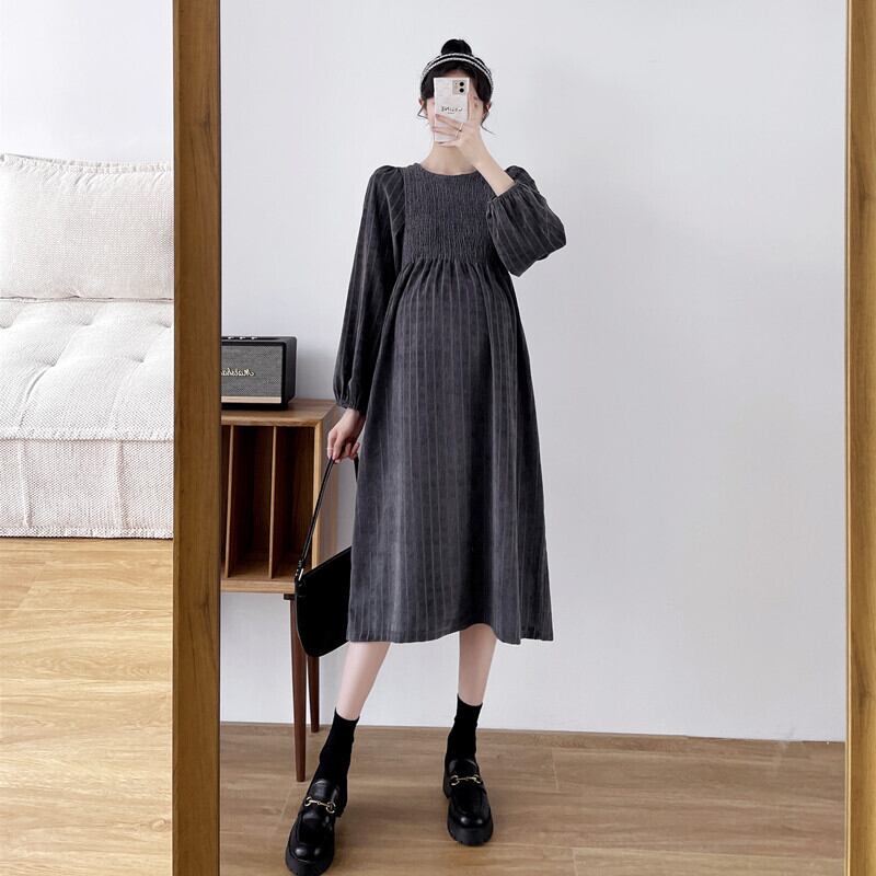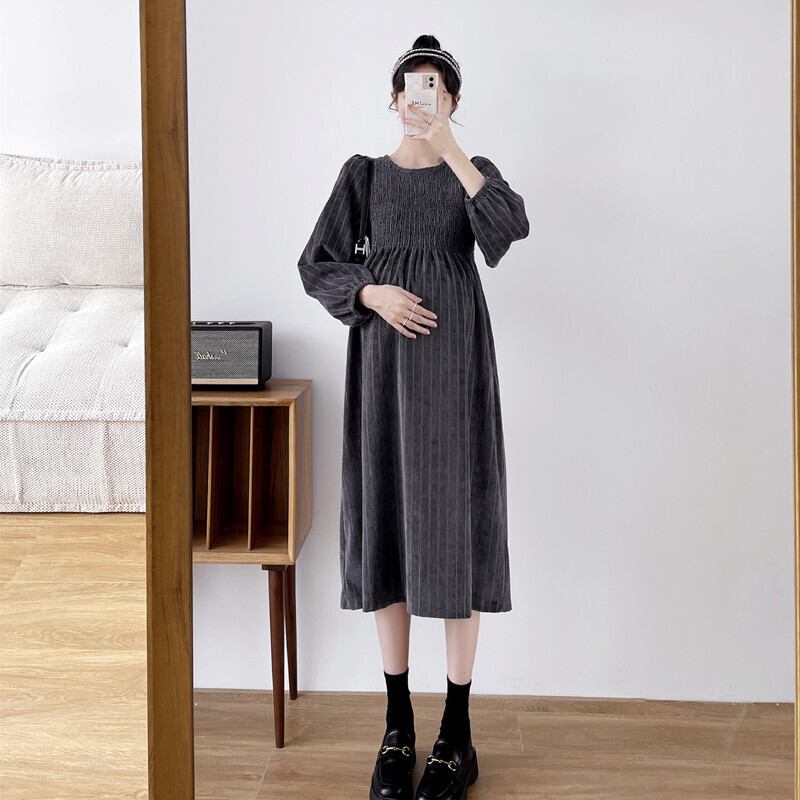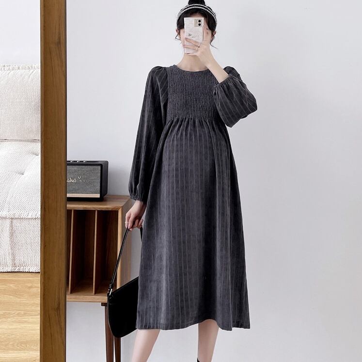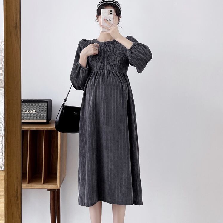 マタニティワンピース マタニティドレス ワンピース 長袖 ラウンドネック フレア ストライプ 春 秋 冬 入学式 入園式 卒業式 卒園式 結婚式 二次会 披露宴 10代 20代 30代 レディース ママ マタニティ 女の子 デート お出かけ 女子会 お泊まり 休日 ファッション コーデ スタイル 楽ちん 送料無料 トレンド 流行 大きい 大きめ ビッグサイズ ゆったり ゆる インポート 海外 人気 大人カジュアル ひざ丈 個性的 コスパ 値段重視 ギャザー ボリューム袖 グレー ブラック モノトーン