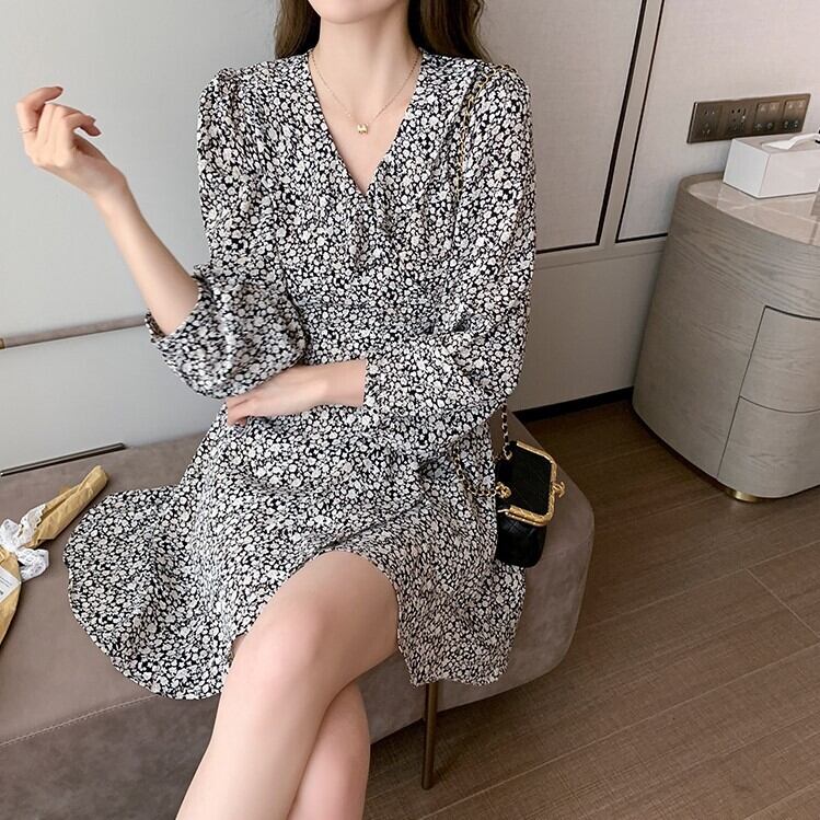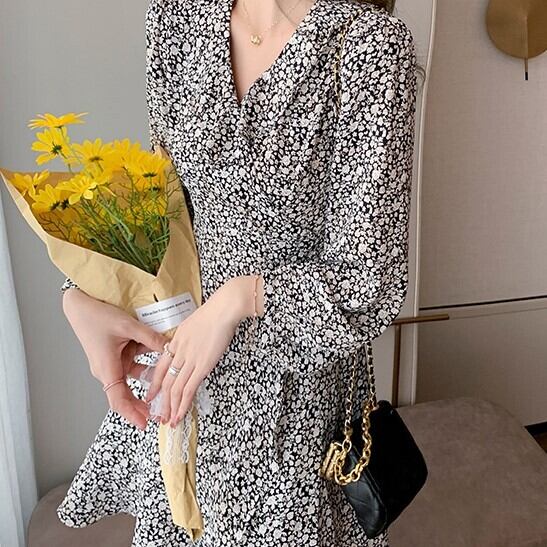 フレアの花柄ワンピースです。
