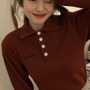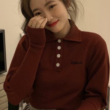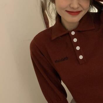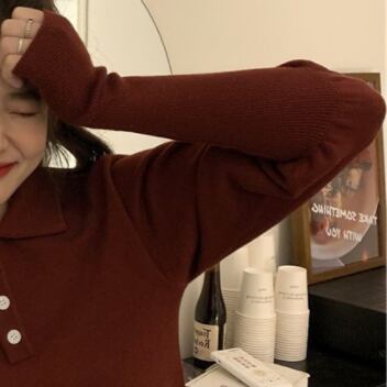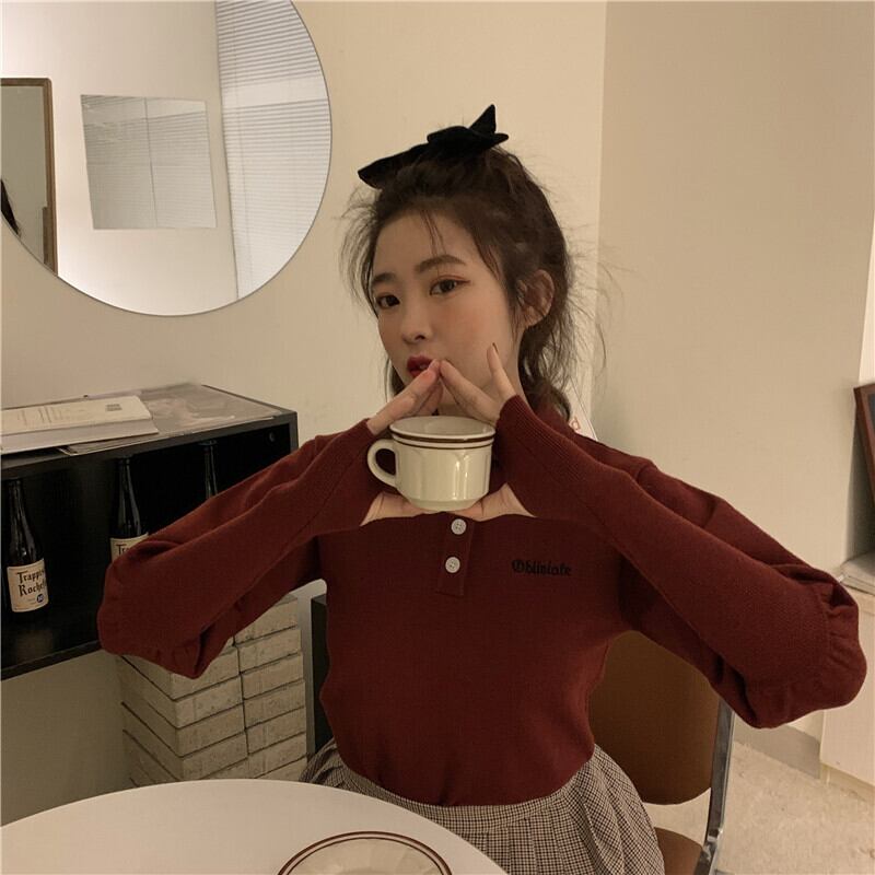 胸ロゴ入り 配色ボタン ニットポロ アクリル ロングカフス 指穴付き トップス ニットソー セーター ミディアム丈 長袖 萌袖 襟付き スリム 細身 スマート 伸縮性 ニット かわいい 大人可愛い きれいめ シンプル カジュアル 上品 おしゃれ お洒落 大人女子 キュート 個性的 こなれ感 無地 春 秋 冬 2021 レディース 女性用 ママ 女の子 学生 通学 デート お出かけ 女子会 休日 着回し 普段使い 合わせやすい 新作 韓国系 オルチャン コーデ スタイル S M L ワインレッド
