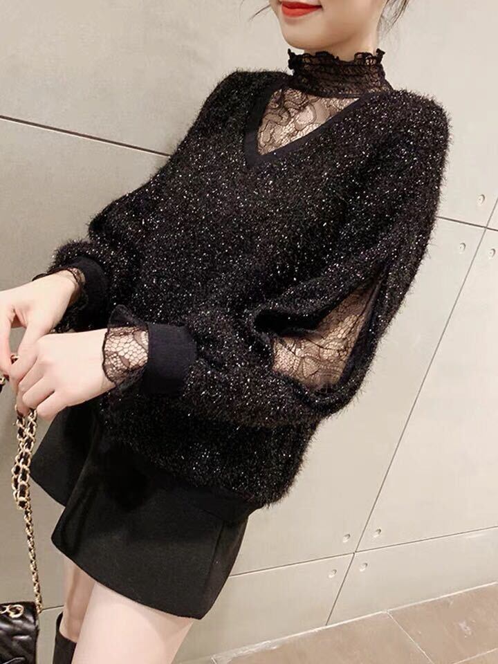 レースプルオーバー トップス ブラック 黒 レギュラー丈 袖あり 長袖 ハイネック ワイド 透け感 シースルー カットアウト くりぬき レース 大人女子 大人 上品 おしゃれ エレガント レトロ レトロ風 こなれ感 ラフ ルーズ シルエット 個性的 デザイン 主役級 存在感 柄 秋 冬 10代 20代 30代 レディース 女性用 デート お出かけ 女子会 イベント リゾート 旅行 パーティ 3XL 4XL 大きいサイズ プラスサイズ M L XL 2XL