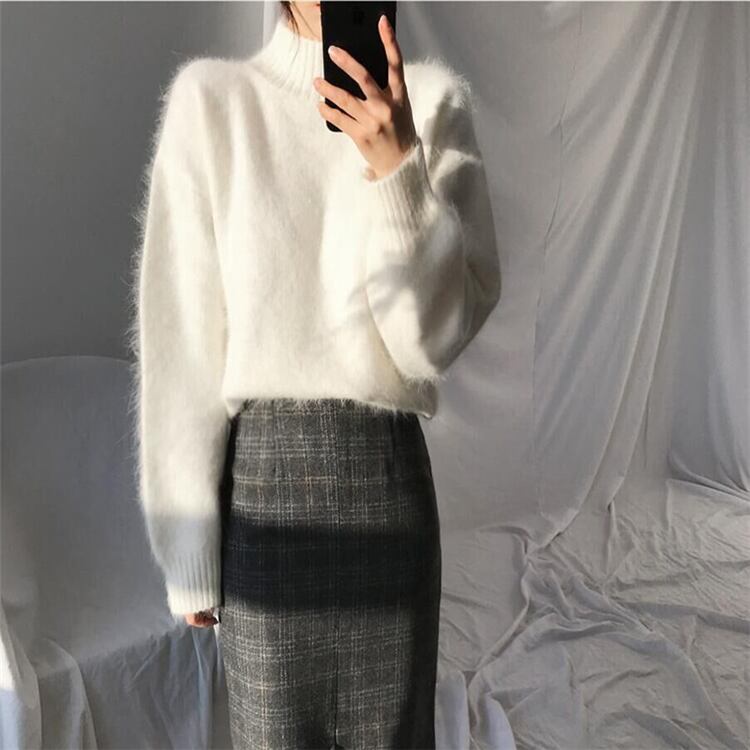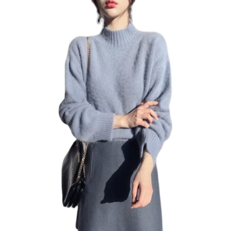 モヘアセーター トップス ニット シンプル ホワイト 白 ブルー 青 レギュラー丈 袖あり 長袖 ハイネック ワイド 大人女子 大人 上品 おしゃれ きれいめ シンプル デイリーウェア レトロ レトロ風 こなれ感 ラフ ルーズ シルエット 主役級 存在感 無地 秋 冬 10代 20代 30代 40代 レディース 女性用 ママ オフィス ビジネス OL 通勤 学生 通学 デート お出かけ 女子会 着回し 普段使い トレンド ファッション コーデ 暖かい 防寒 S M L XL