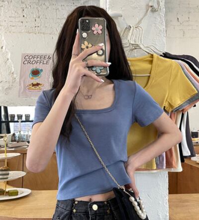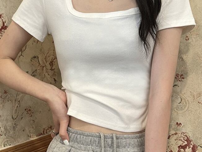 スクエアネックシンプル半袖Tシャツ トップス シャツ ショート丈 半袖 スクエアネック スリム タイト かわいい 大人可愛い きれいめ シンプル カジュアル おしゃれ かっこいい 大人女子 無地 春 夏 10代 20代 30代 40代 50代 レディース オフィス OL 通勤 学生 通学 デート お出かけ 公園デビュー お泊まり 休日 ジム ヨガ 旅行 高原 お散歩 紫外線 スポーツ 着回し 普段使い 重ね着 ファッション コーデ スタイル 楽ちん 定番 プチプラ 個性的 安い お得 合わせやすい