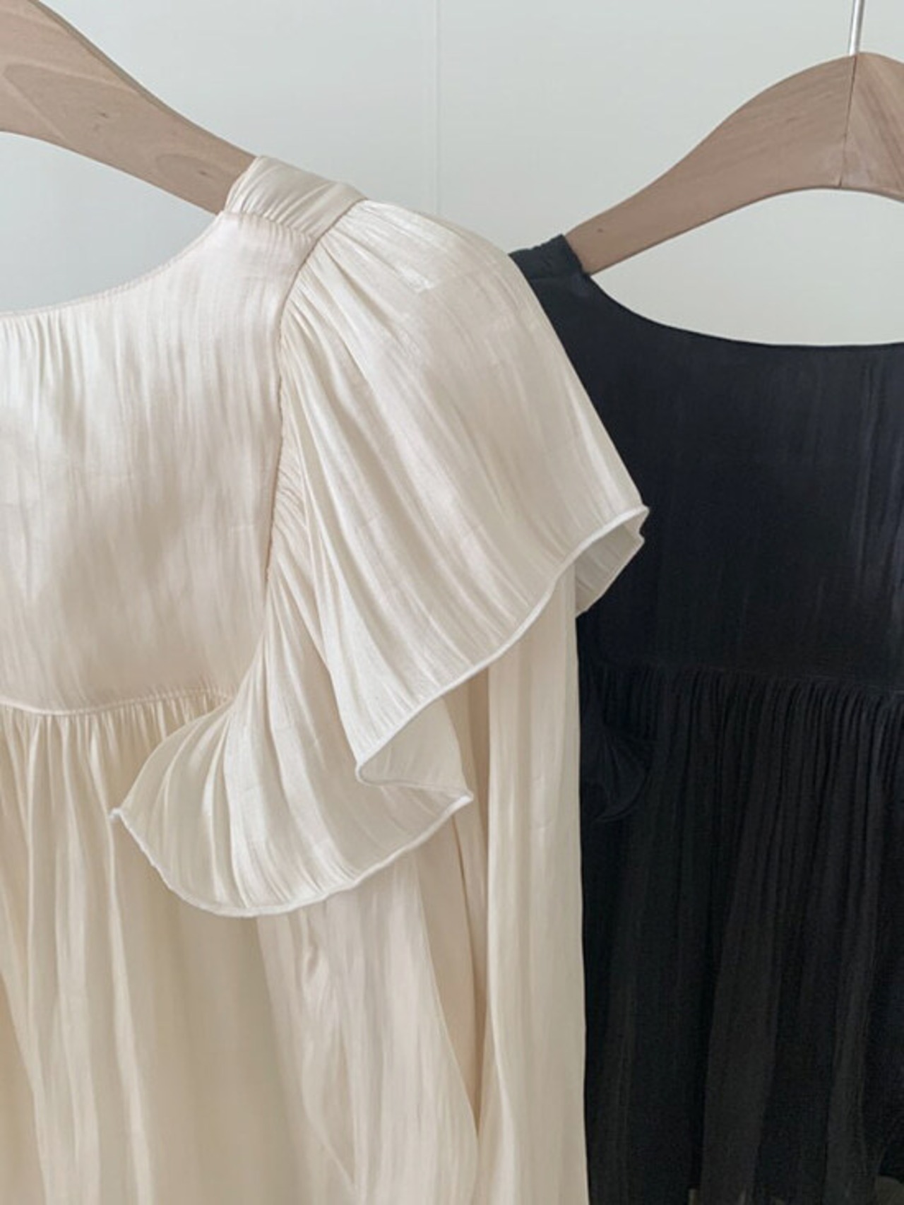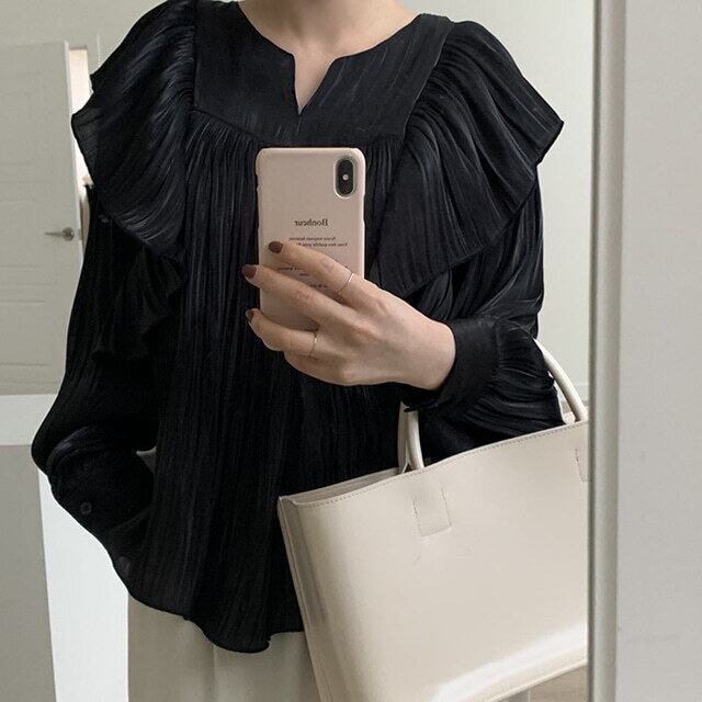 パフスリーブシャツ トップス シャツ ブラウス クラシック ブラック 黒 アプリコット レギュラー丈 袖あり 長袖 ボリューム袖 パフスリーブ ラウンドネック シャーリング ストレート フリル 大人女子 大人 上品 おしゃれ エレガント レトロ レトロ風 こなれ感 ラフ ルーズ シルエット 個性的 デザイン 主役級 存在感 無地 春 スプリング 20代 30代 40代 レディース 女性用 学生 通学 デート お出かけ 女子会 着回し 普段使い ファッション コーデ ワンサイズ