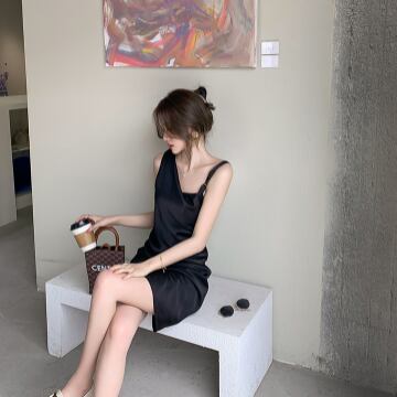 甘さと辛さがバランス良くマッチする、モード感漂うブラックグリーンのワンピース。細身のシルエットは、スマートに見せてくれます。シンプルなデザインで、大人っぽい雰囲気も漂わせます。ミニ丈なので、足元にはスニーカーやブーツでカジュアルダウンしたコーディネートもおすすめ。逆に、ヒールやパンプスで華やかに決めるのも素敵です。