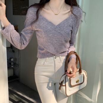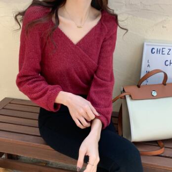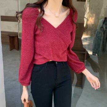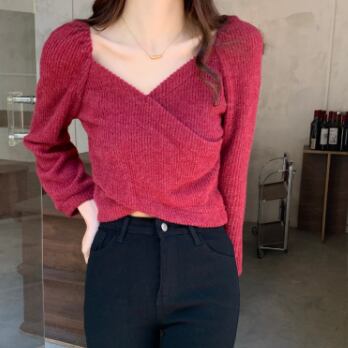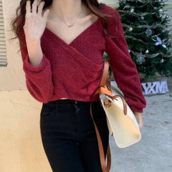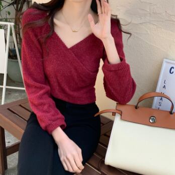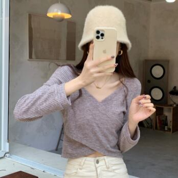 これからの季節にぴったりのオシャレなVネックショート丈長袖ニット トップスで、お気に入りのコーディネートを楽しんでください。