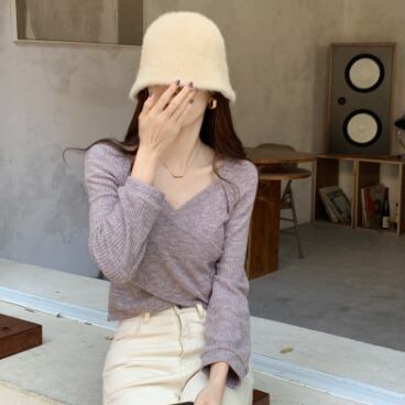 暖かくふわふわした肌触りのVネックショート丈長袖ニット トップスが登場しました!モコモコでかわいい印象を与えるトップスは、シンプルながらも大人可愛い雰囲気漂うアイテム。大人女子にも使いやすい上品なデザインです。ラフな着こなしにも合わせやすいルーズフィットで、こなれ感のあるスタイルが完成します。