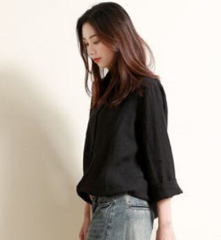 ナチュラルな雰囲気のシンプル長袖ブラウスです。