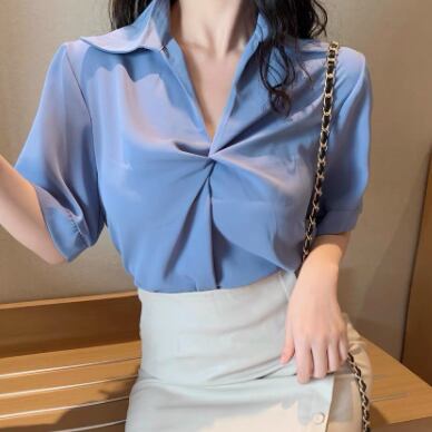 シフォンシャツ トップス シャツ ブラウス シンプル ブラック 黒 ホワイト 白 ブルー 青 レギュラー丈 袖あり 半袖 Vネック ストレート 大人女子 大人 上品 おしゃれ きれいめ シンプル デイリーウェア レトロ レトロ風 こなれ感 ラフ ルーズ シルエット 主役級 存在感 無地 夏 サマー 20代 30代 40代 50代 レディース 女性用 ママ 通勤 学生 通学 着回し 普段使い ファッション コーデ 定番 細見え スタイル S M L XL 2XL