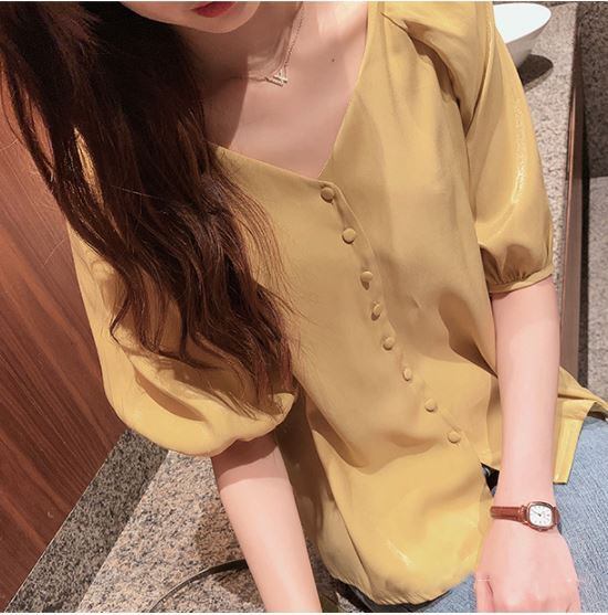 シフォンブラウス トップス ミドル丈 袖あり 半袖 パフスリーブ Vネック ストレート シフォン かわいい 大人可愛い きれいめ シンプル カジュアル 大人 上品 おしゃれ お洒落 かっこいい 大人女子 こなれ感 ラブリー キュート クール エレガント モダン 主役級 無地 夏 10代 20代 30代 レディース 女性用 ママ オフィス OL 通勤 学生 通学 デート お出かけ 休日 リゾート 旅行 ホテル ガーデン レストラン 着回し ファッション スタイル モテ トレンド 流行 インスタ映え 好感度