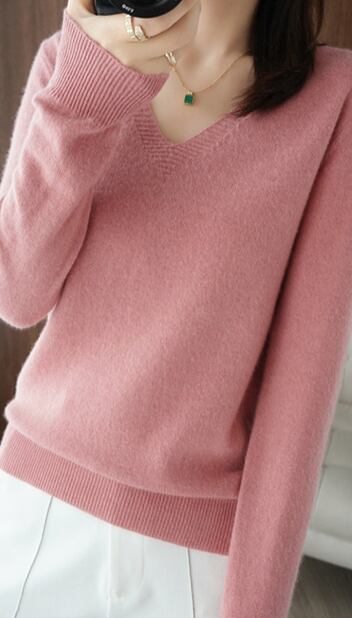 シンプルでありながら、女性らしさを引き出すニットセーターが登場しました!Vネックが首元をすっきりと見せ、長めの袖はカバー力抜群。オフホワイト、グリーン、ピンク、ブラウン、ブルーなど全10色展開で、コーディネートの幅が広がります。シンプルなデザインだからこそ、どんなスタイルにも合わせやすい上品な一枚です。