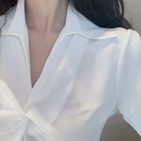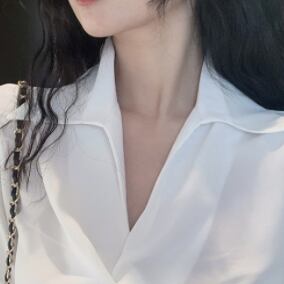 Vネックと襟のシャープなスタイルは首元キレイ女子に!