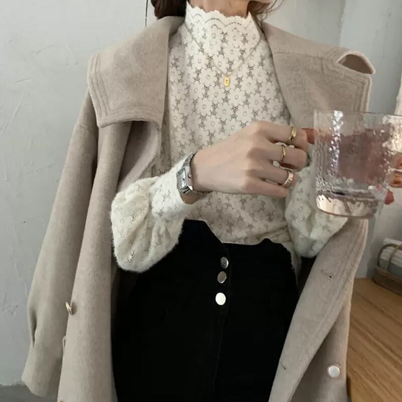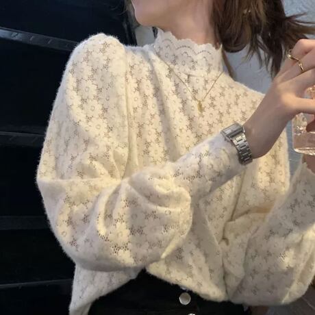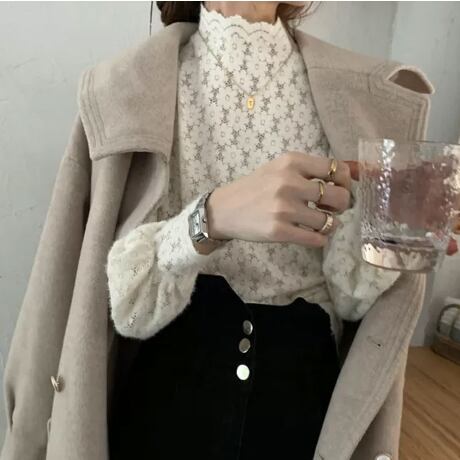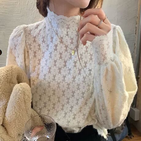 上品さとキュートさが両立した、ハイネックレースブラウストップス。透け感のあるレースが女性らしさをアップさせ、ビショップ・スリーブでエレガントな印象を与えます。袖も手首まであるので、オフィスやフォーマルなシーンでも安心して着用できます。